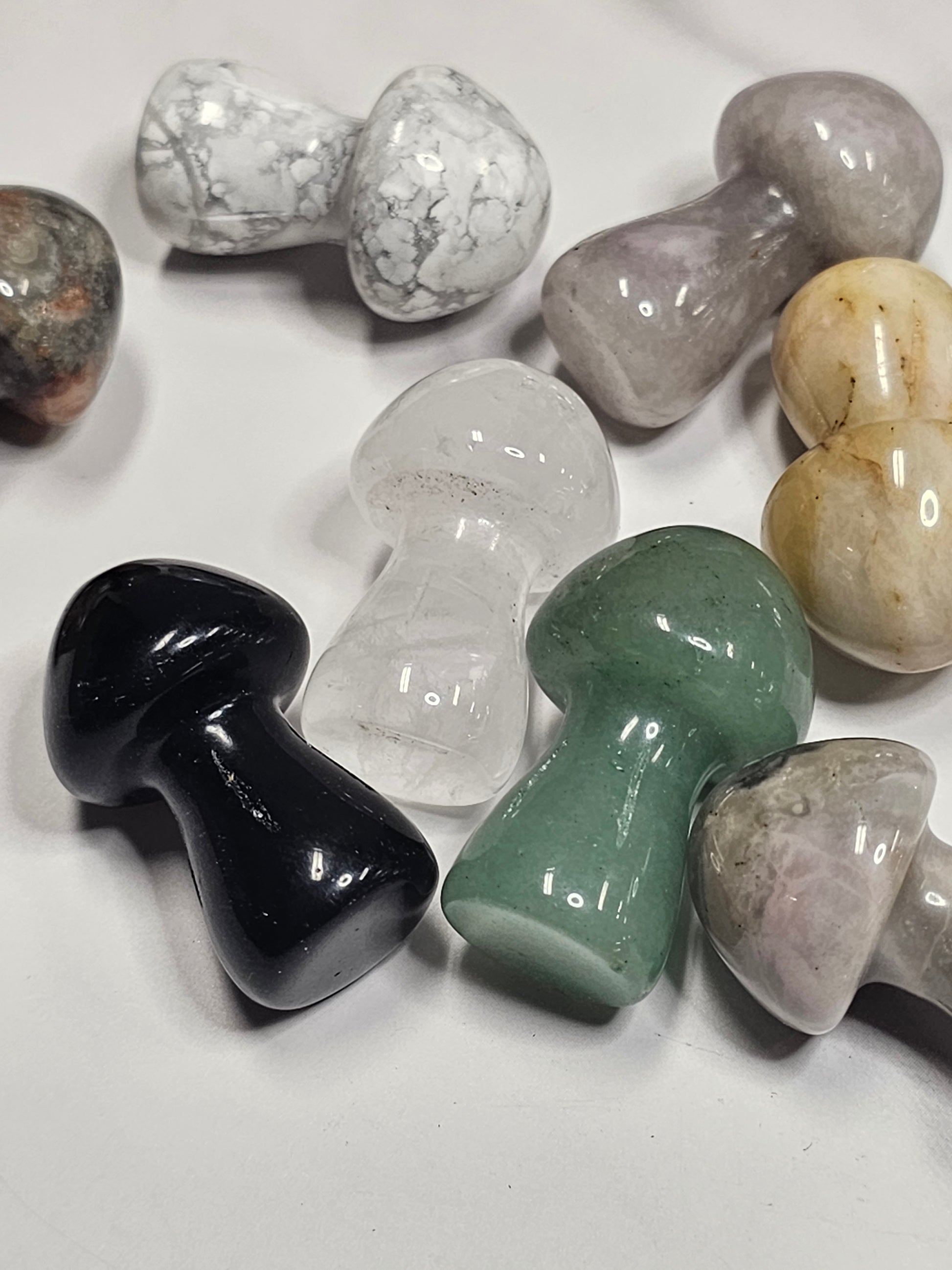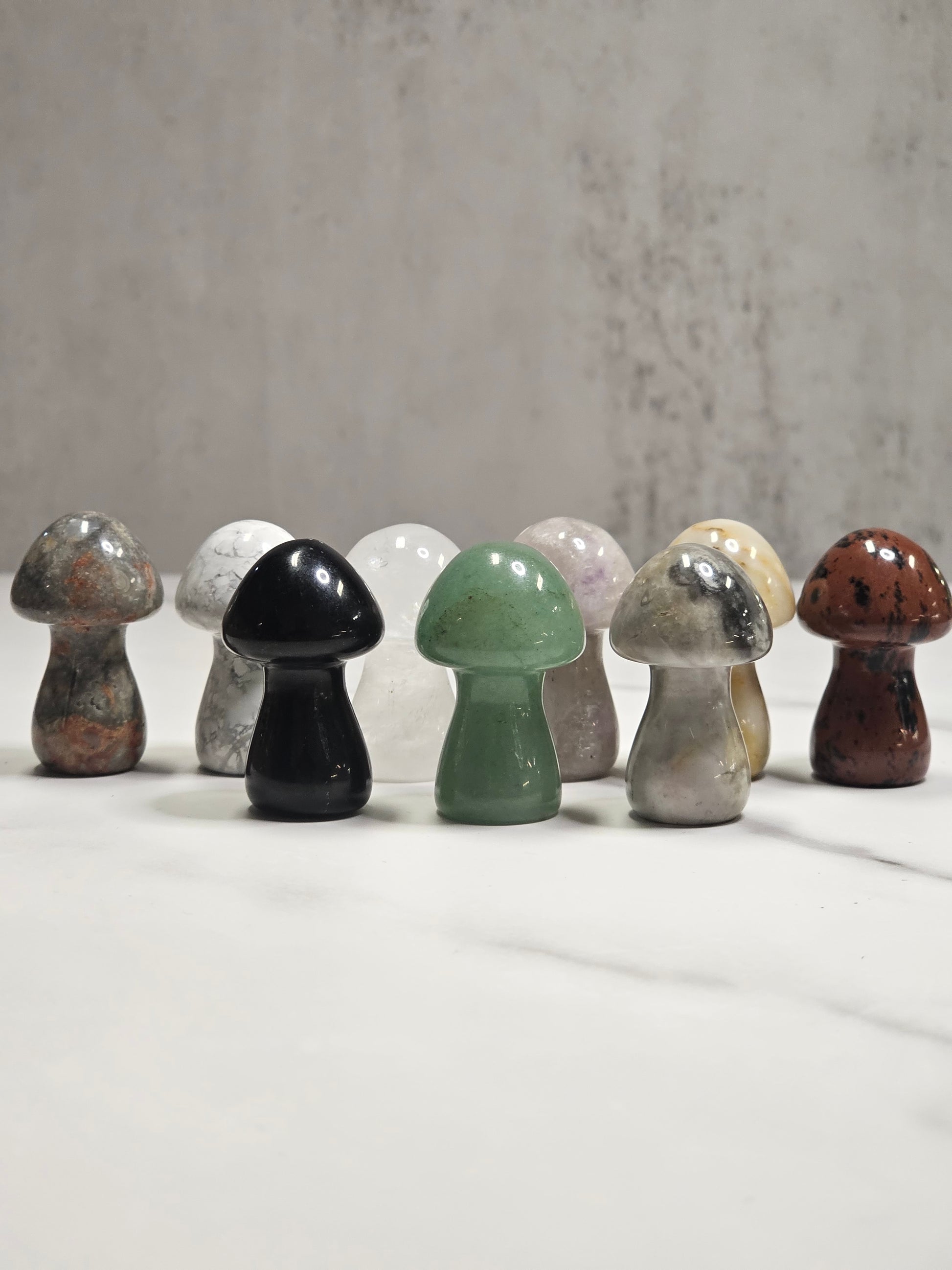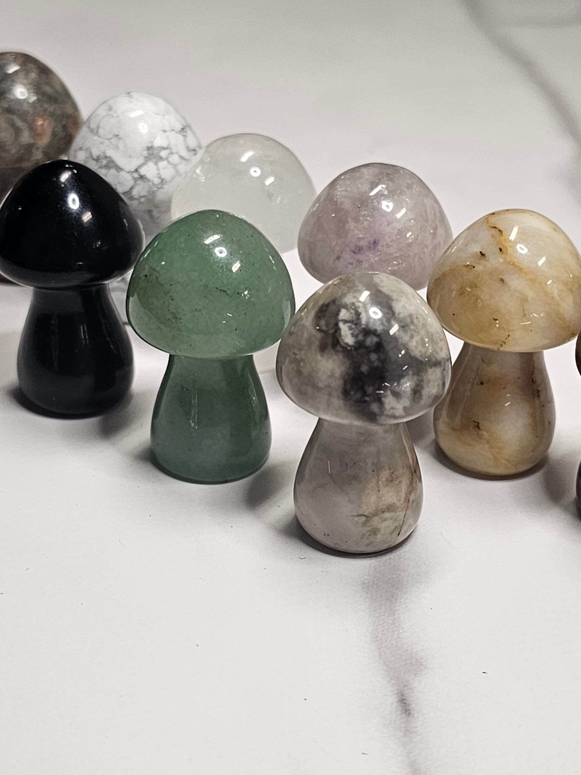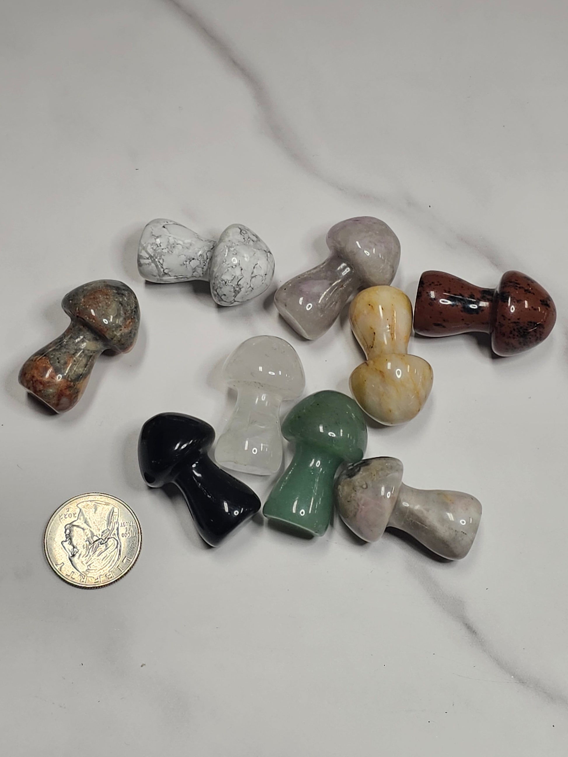 Assorted crystal mushrooms are 36mm or 1.4 inches tall. They are sent curators choice at random. There's a lot of possible crystal varieties.