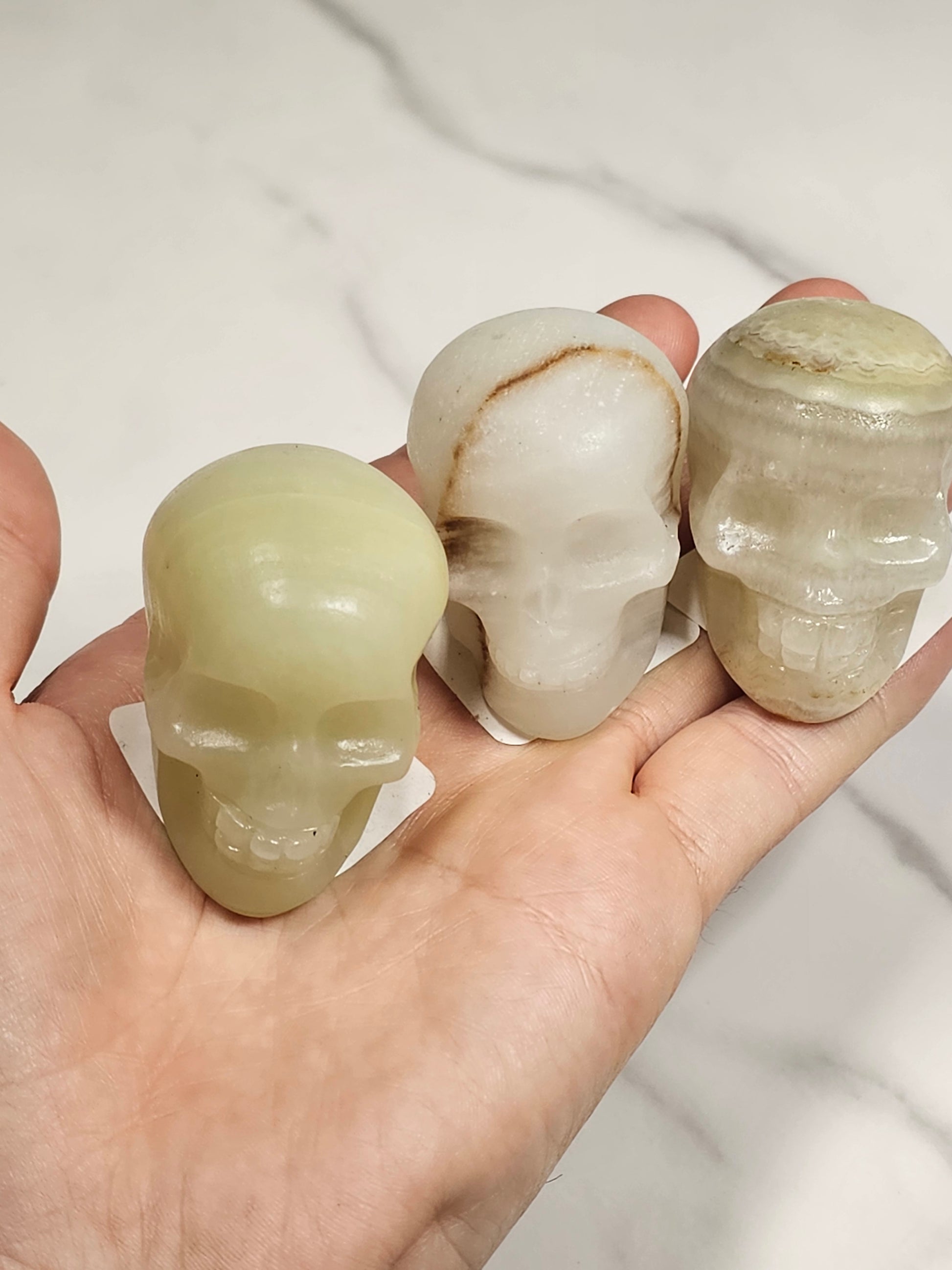 Each Afghanistan Jade skull carving is approximately 42mm or 1.63 inches tall. They have good intricate detail. Each one is sent curators choice at random, similar in look to the ones pictures.