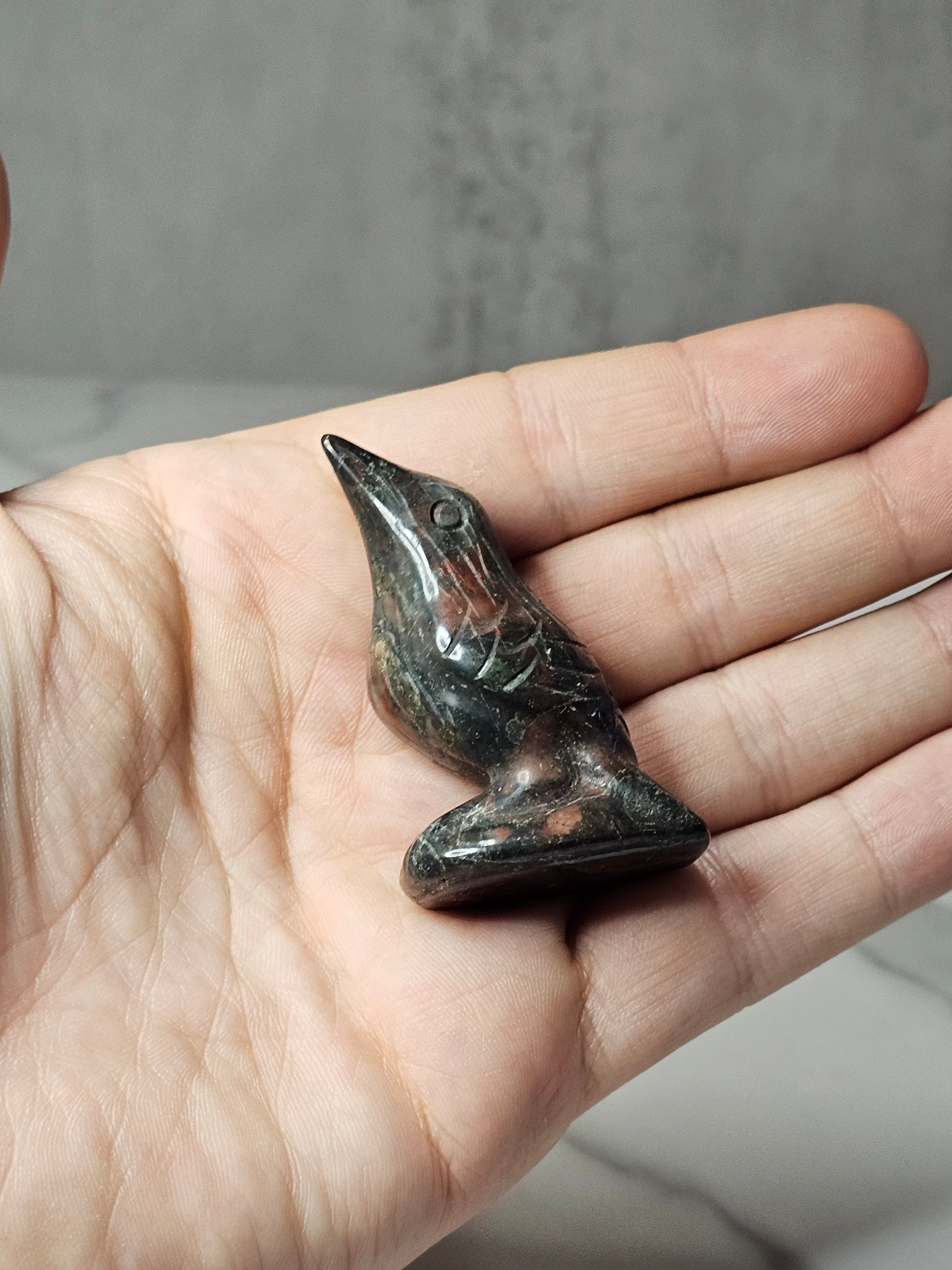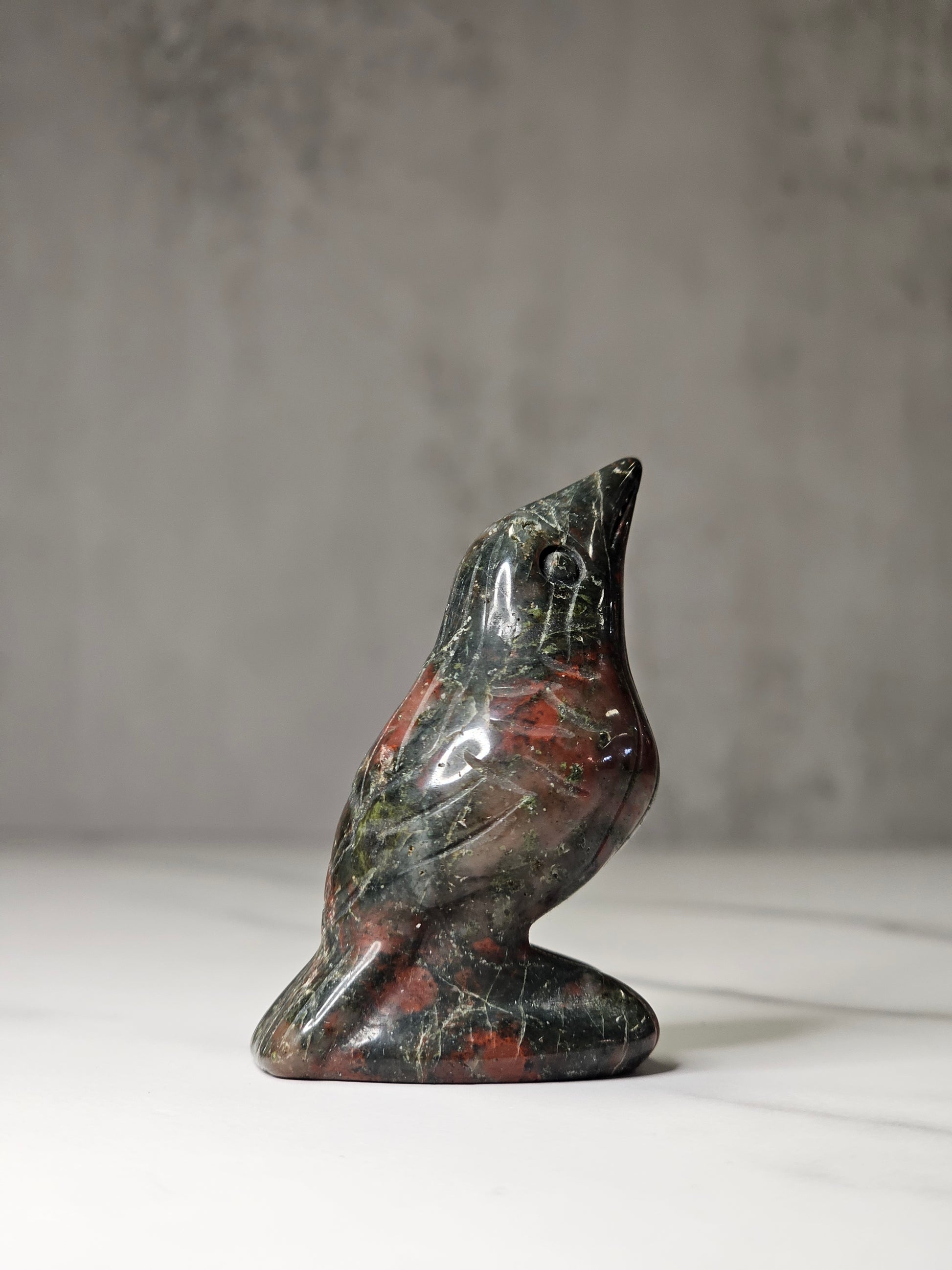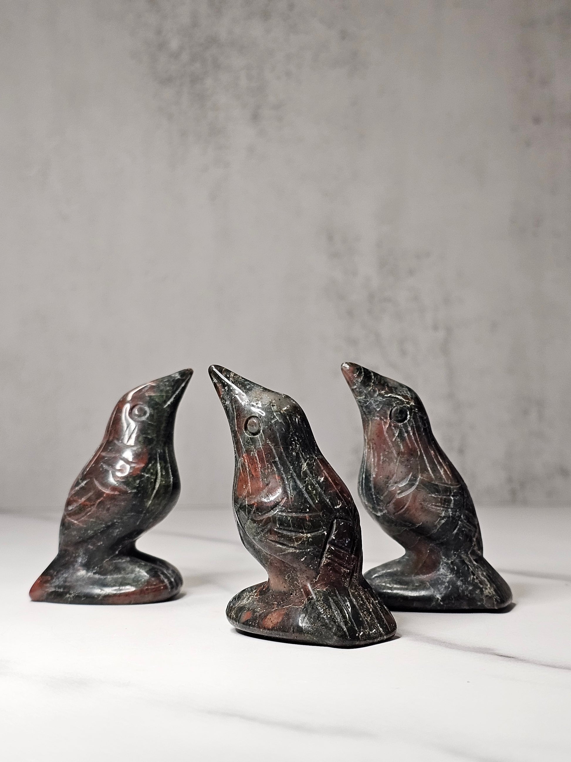 These little Raven carvings are made out of Africa Bloodstone. Each one stands 2 inches tall.