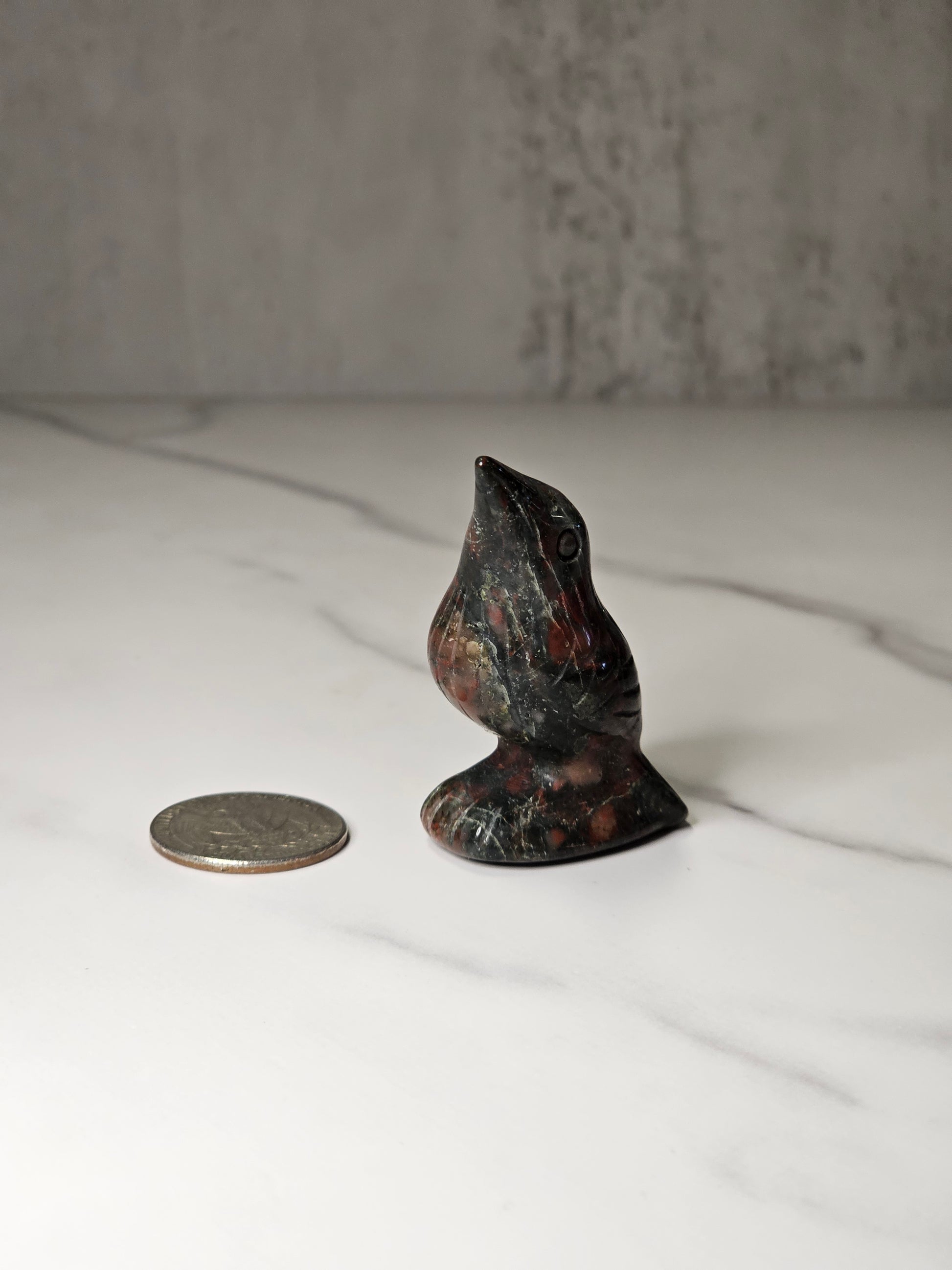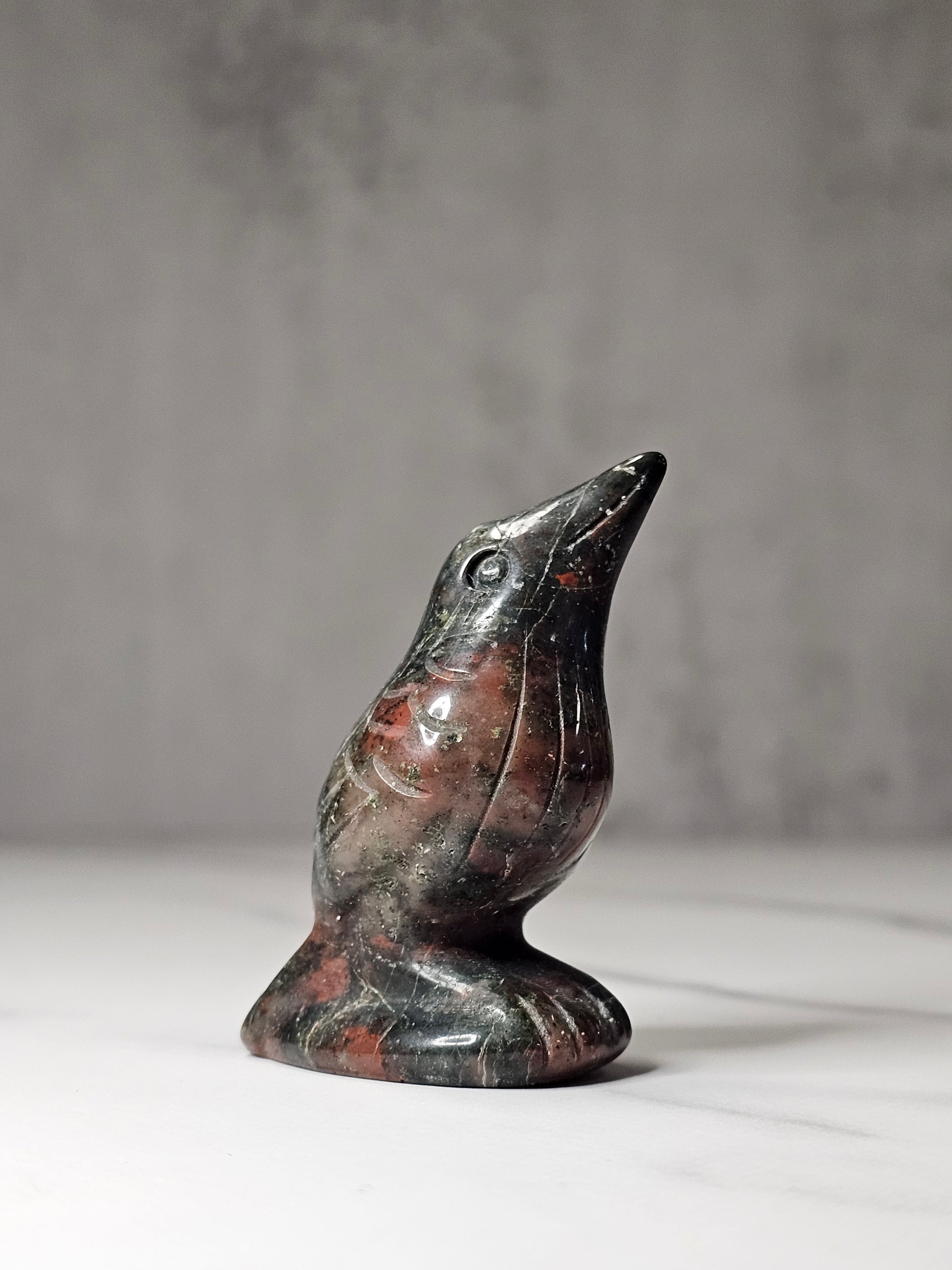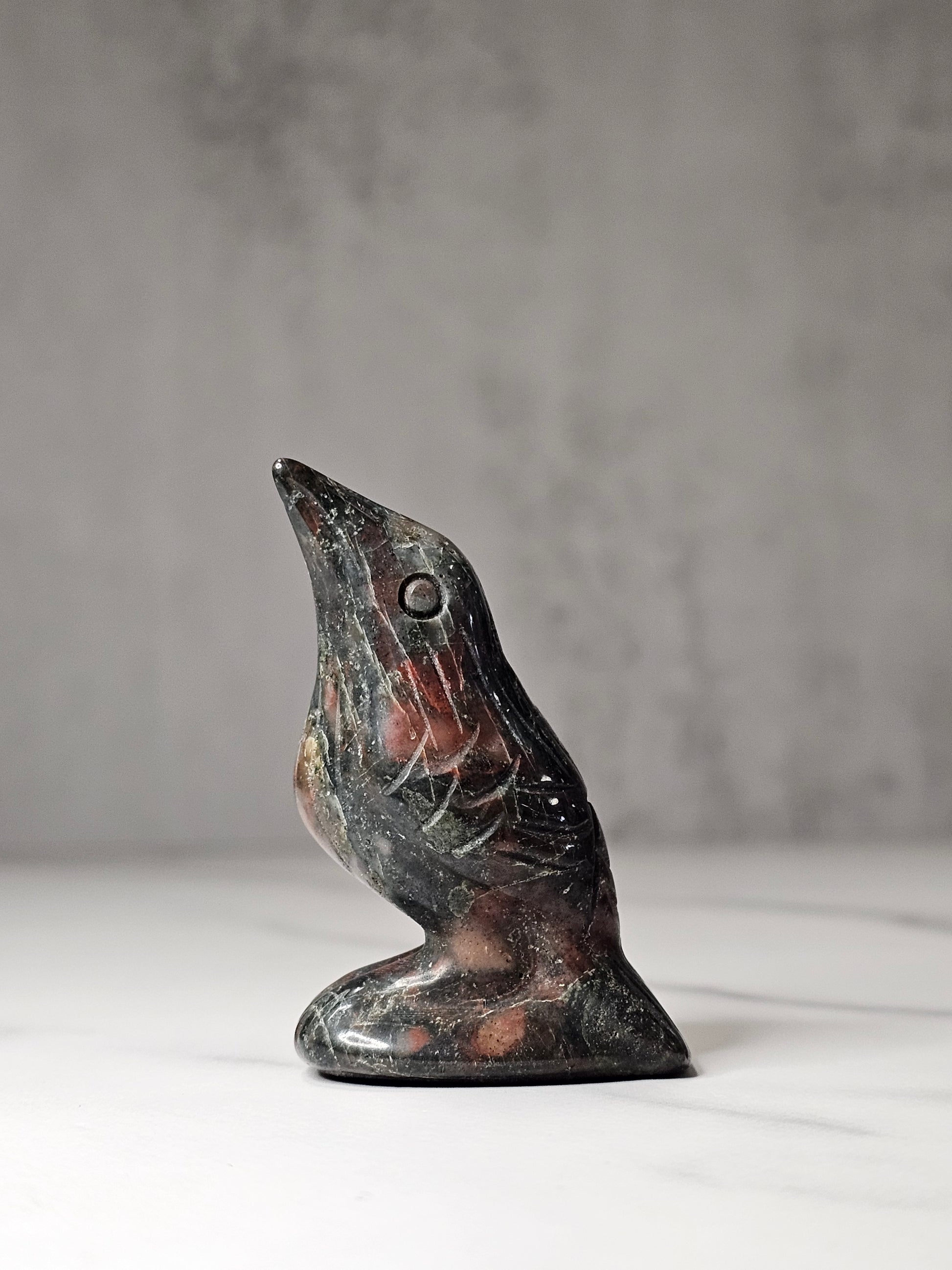These little Raven carvings are made out of Africa Bloodstone. Each one stands 2 inches tall.