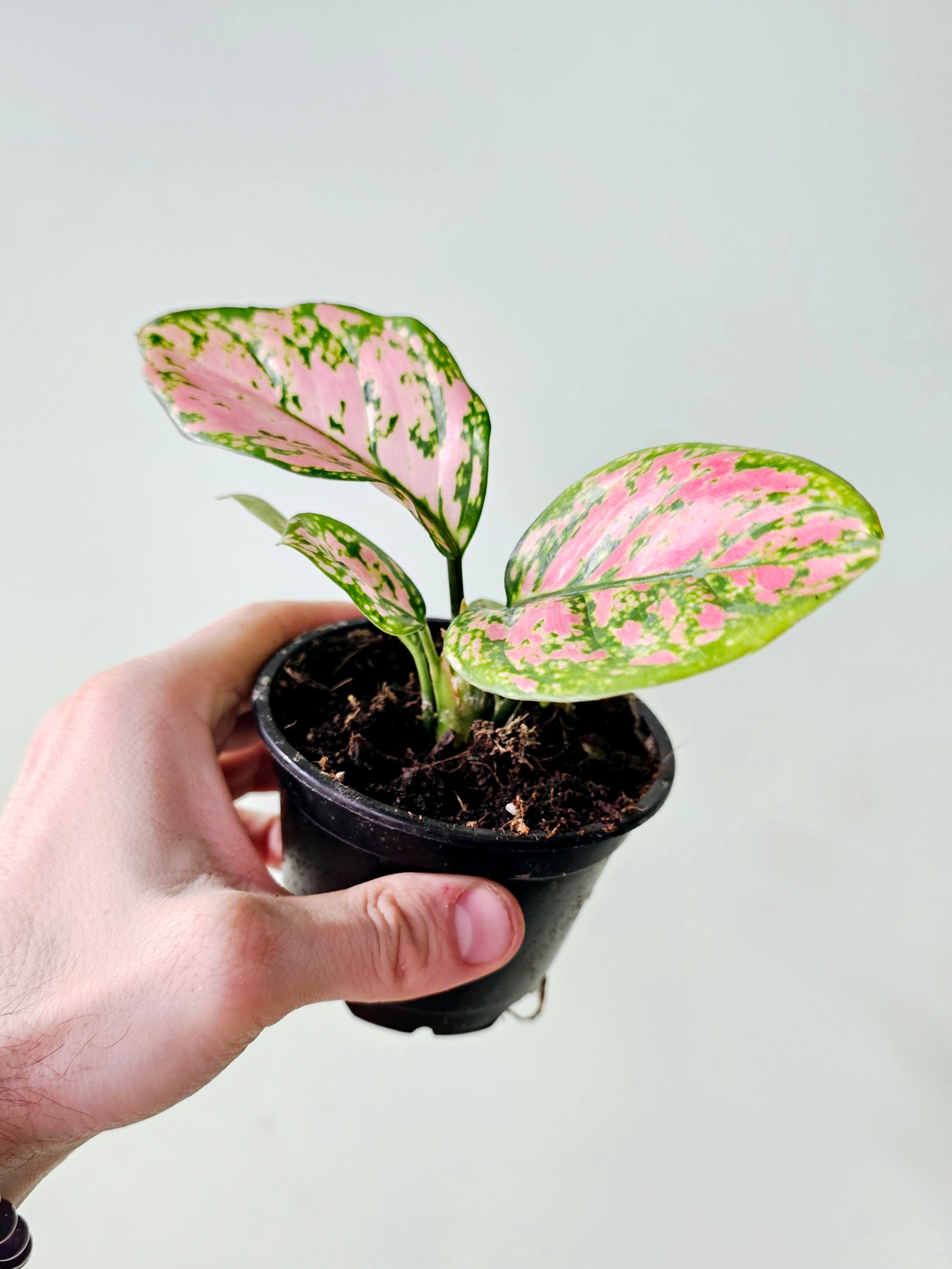 These Aglaonema have beautifully pink speckled foliage. Each one is growing and fully rooted in a 4" plastic nursery pot.