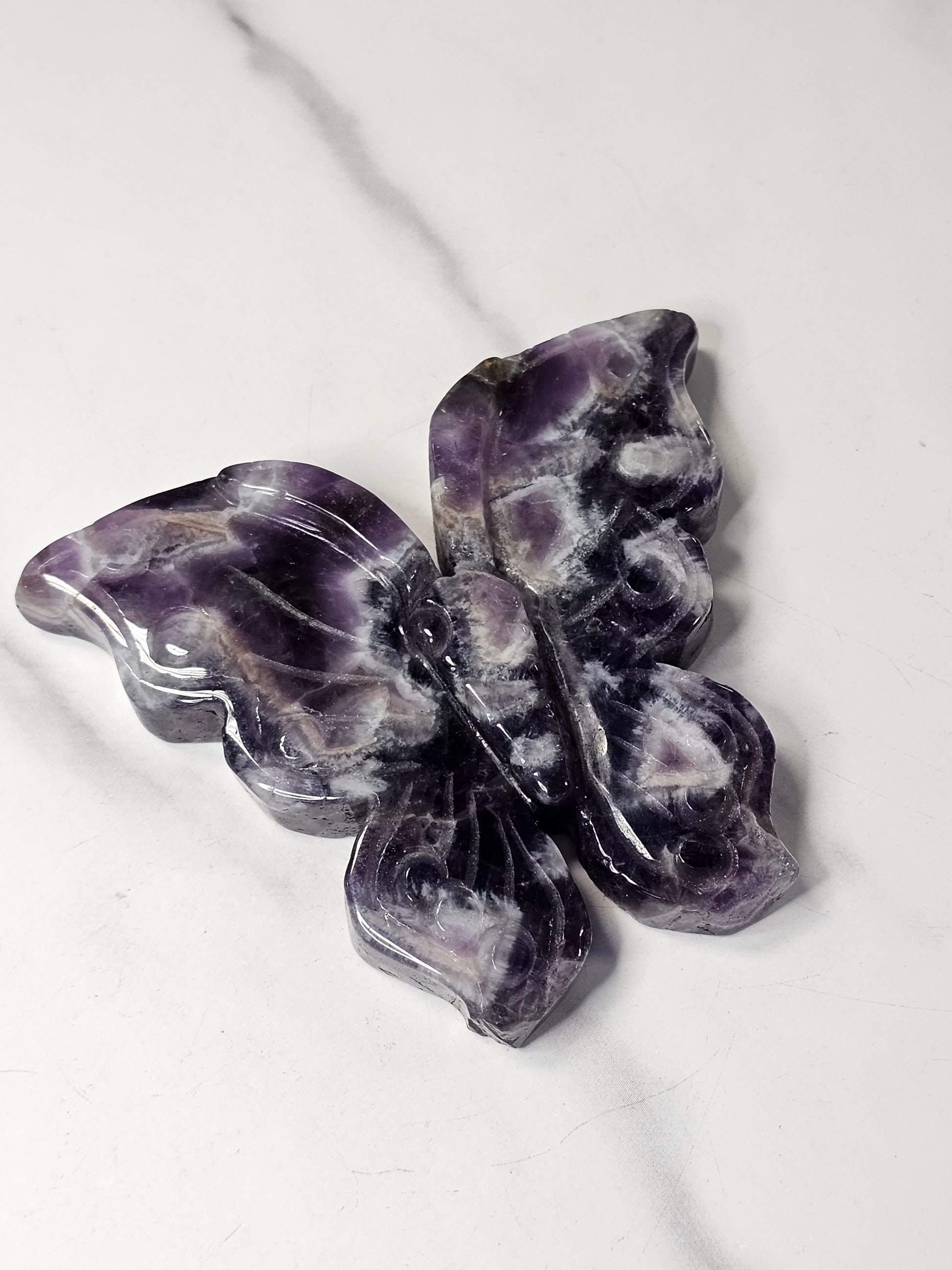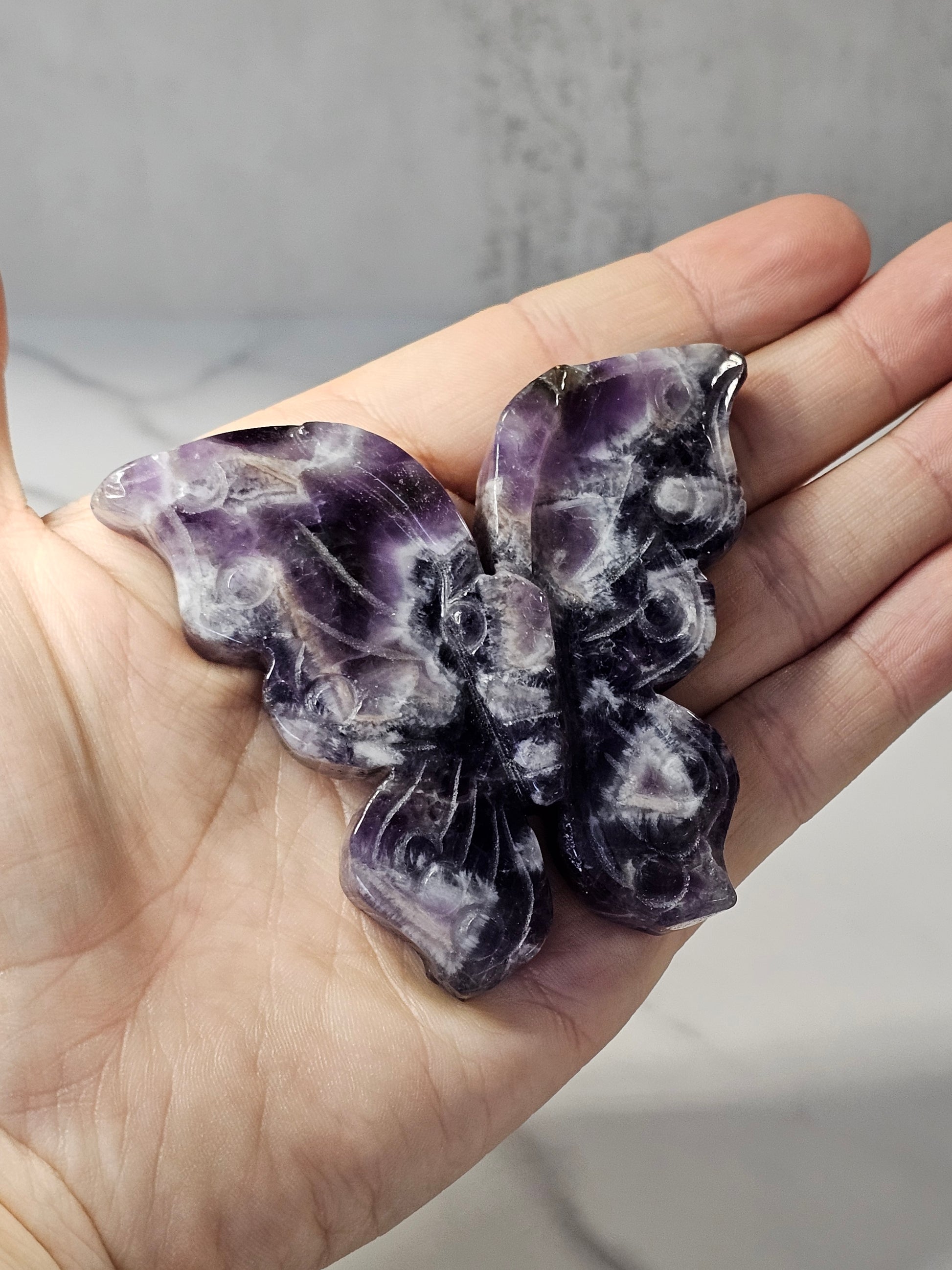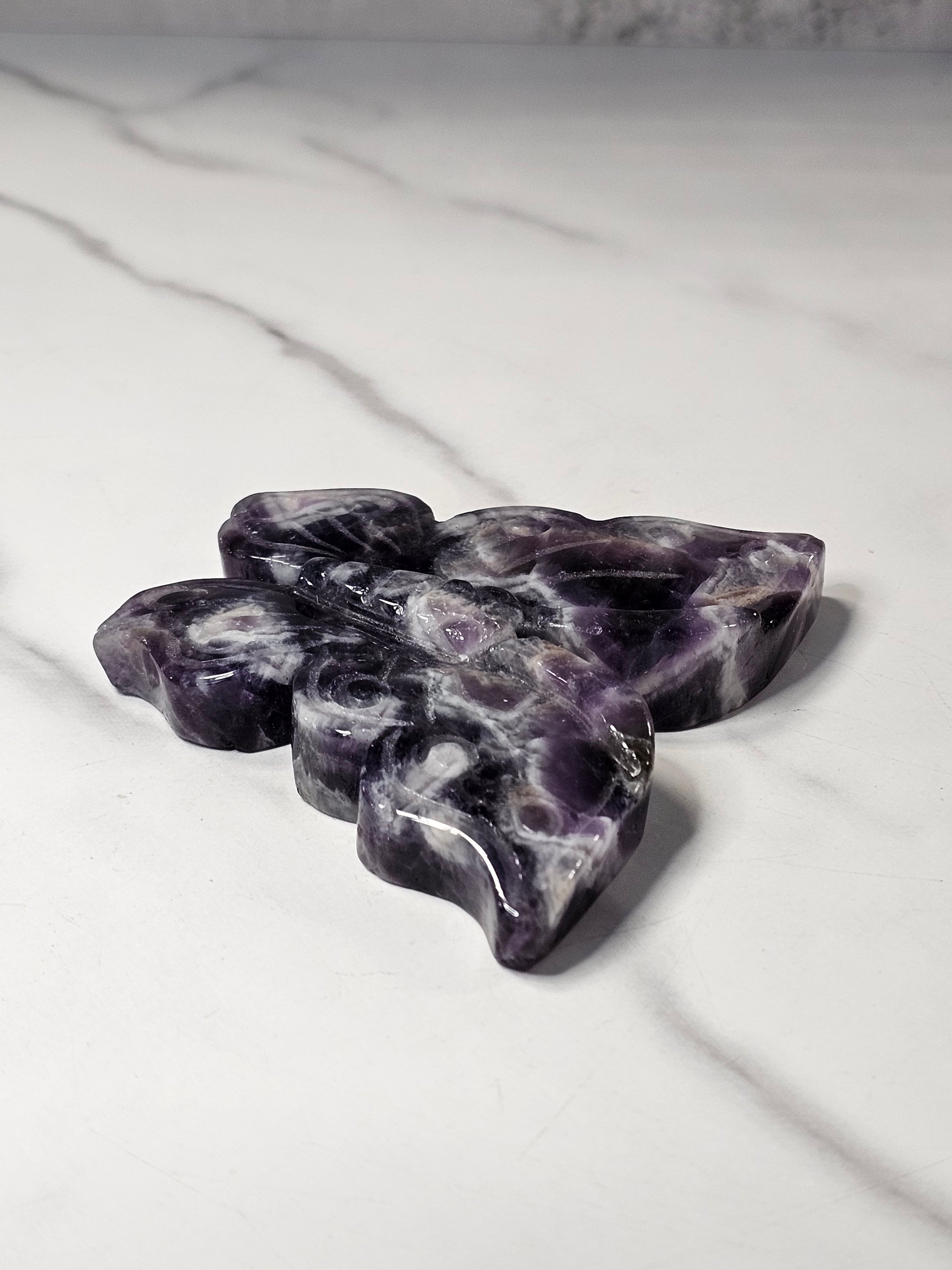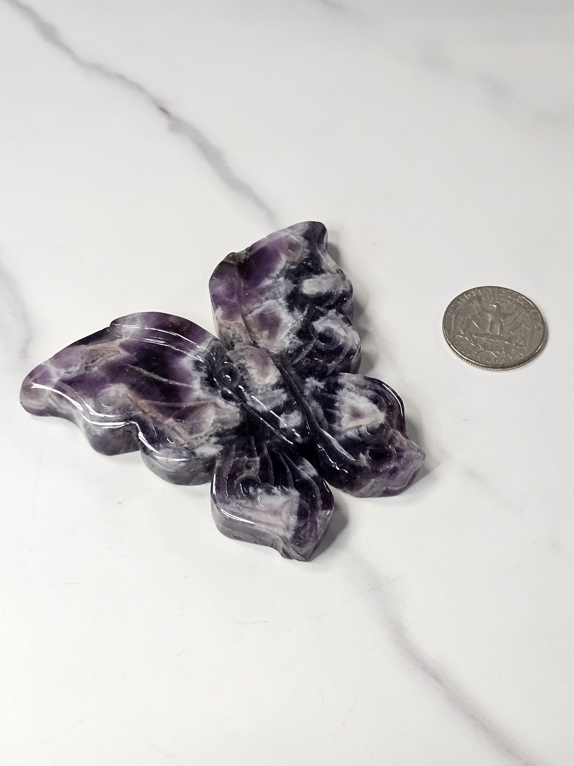 This Amethyst butterfly carving is 2.8 inches tall and 3.27 inches wide.
