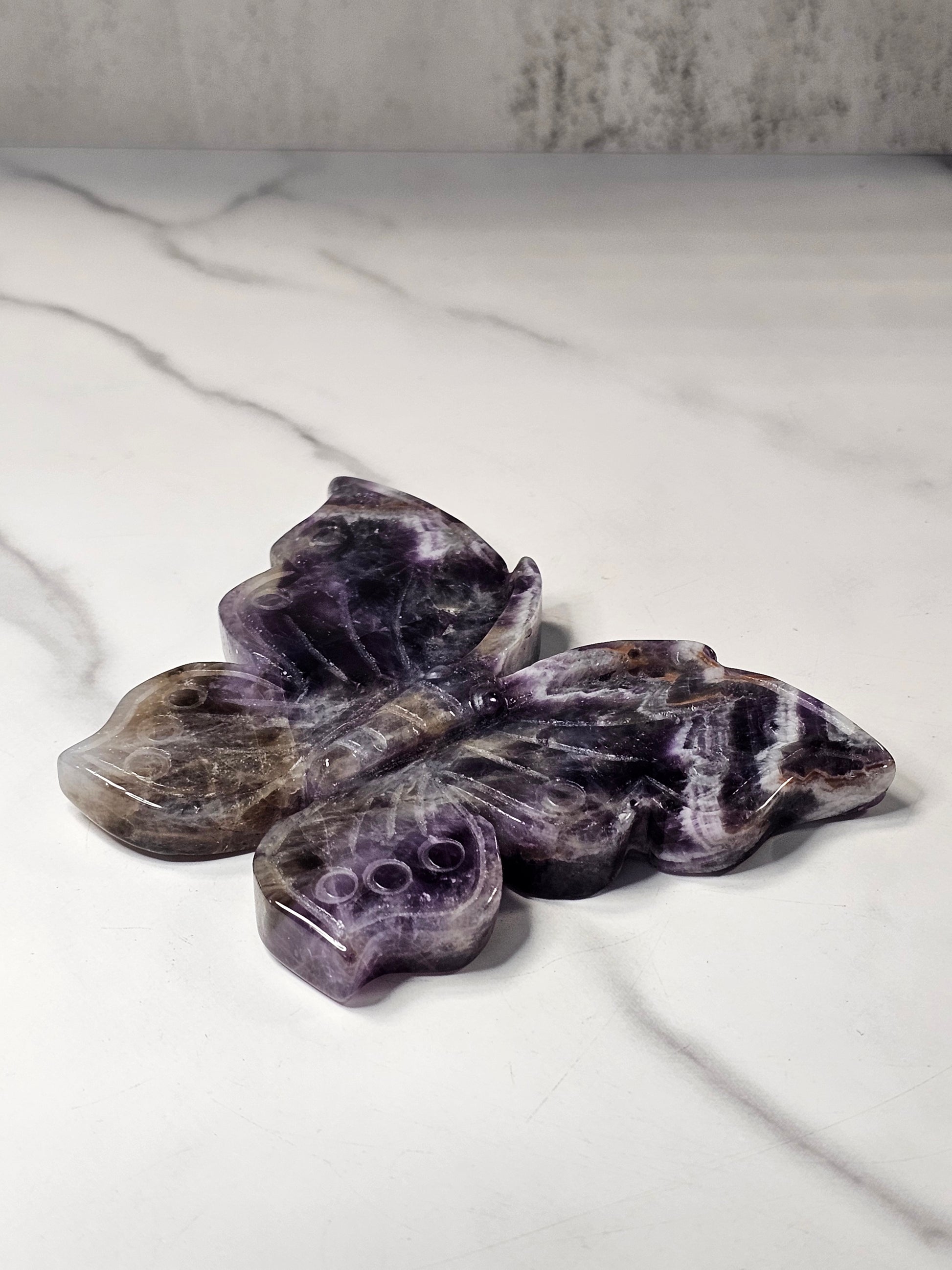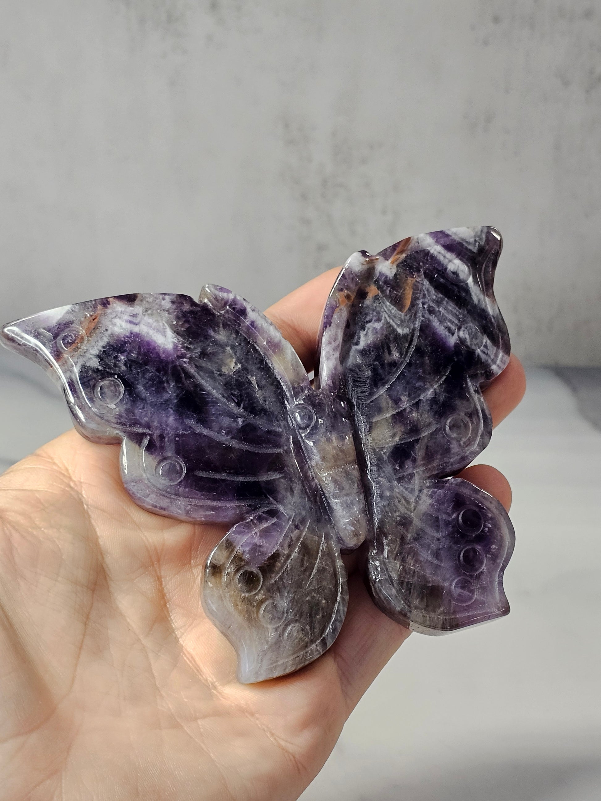 This Amethyst butterfly carving is 3.41 inches tall and 4.56 inches wide.