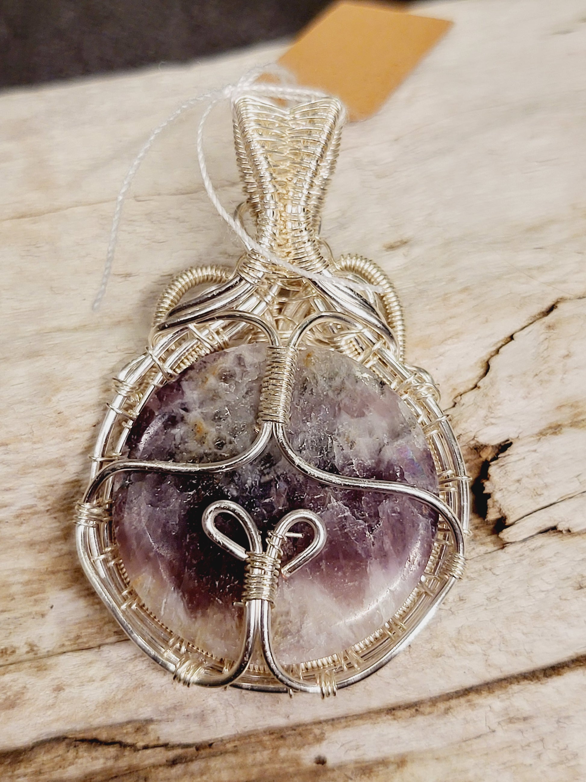 Amethyst Silver Wire Wrapped Necklace Pendant