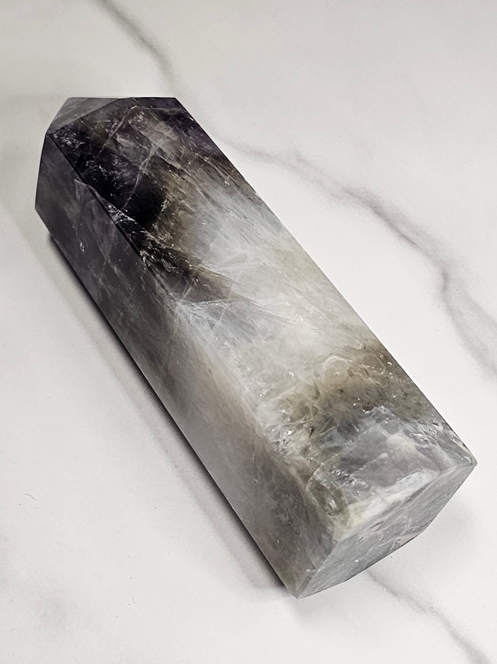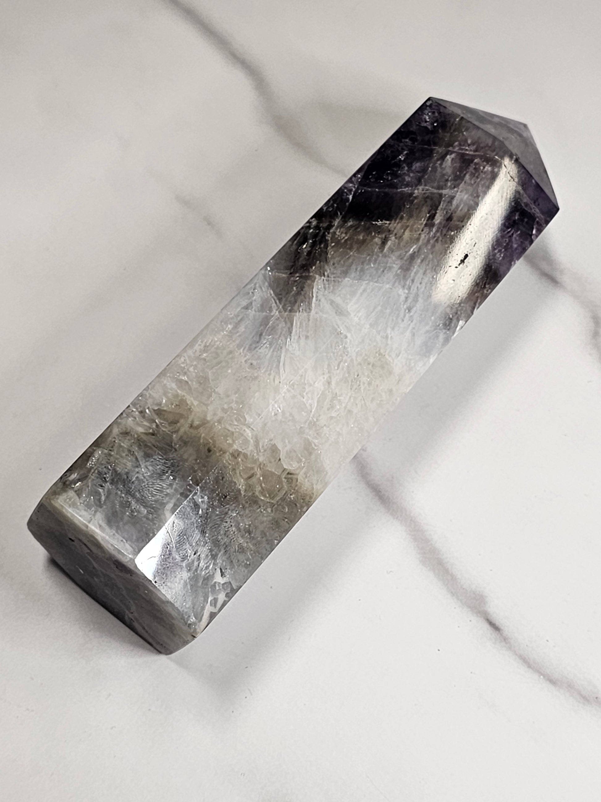 This tower is 153mm or 6.02 inches tall. It has a base diameter of 2.11 inches. It weighs 20.5 ounces. Excellent vibrant purple color.