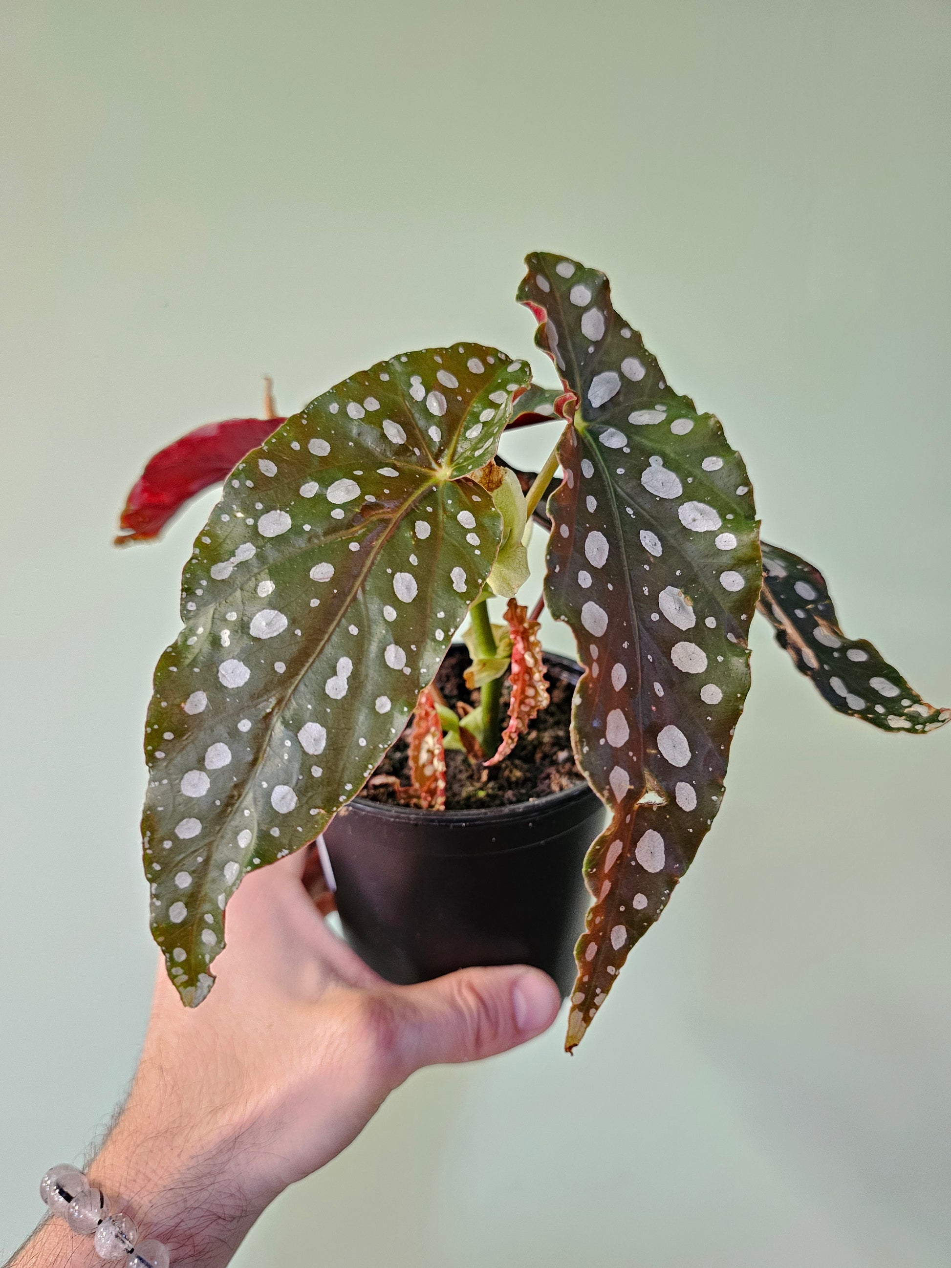 Also known as the Polka Dot Begonia, these Begonias feature metallic silver spotted foliage.