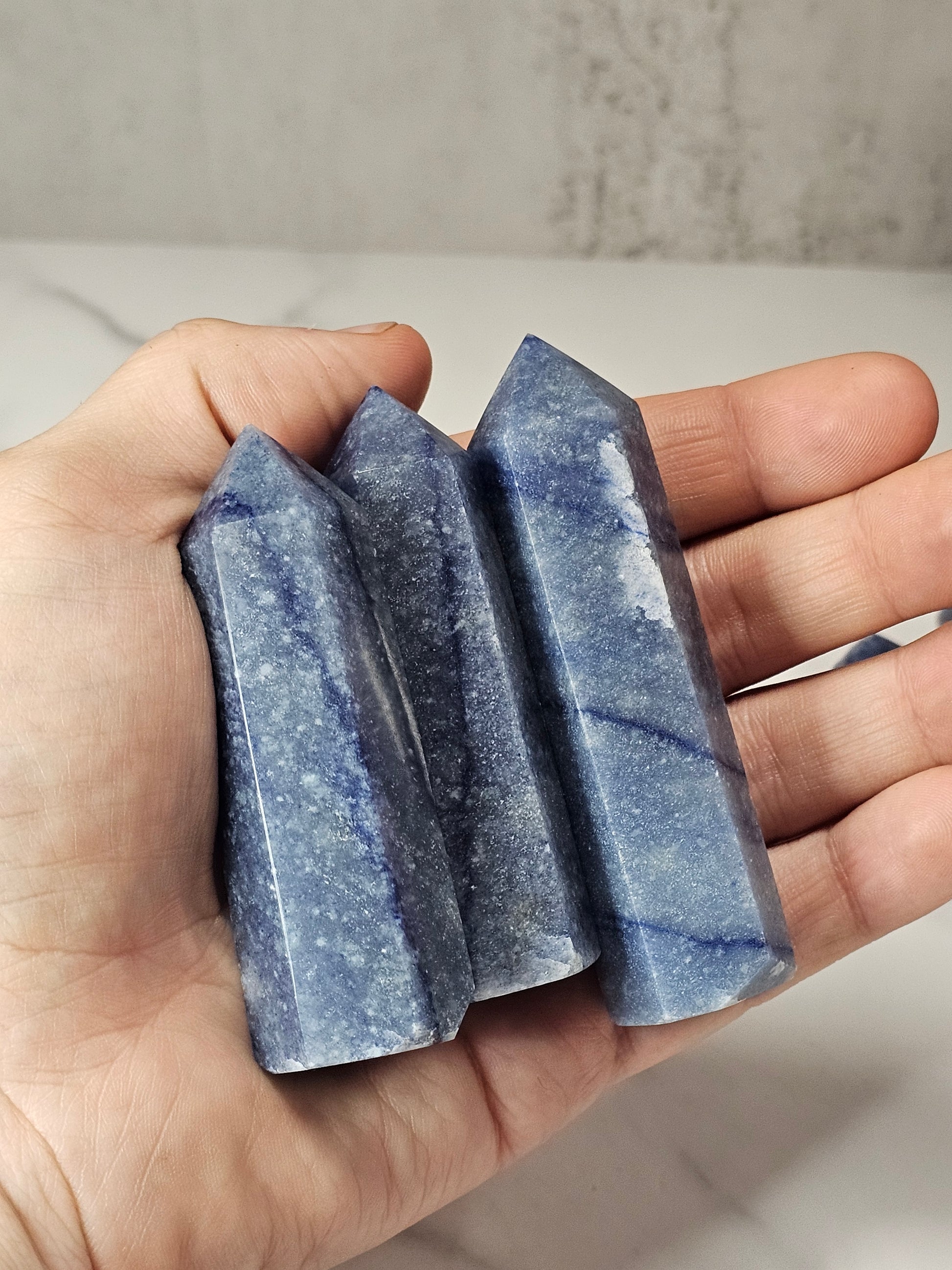 Each Blue Aventurine tower is approximately 3-3.5" in length