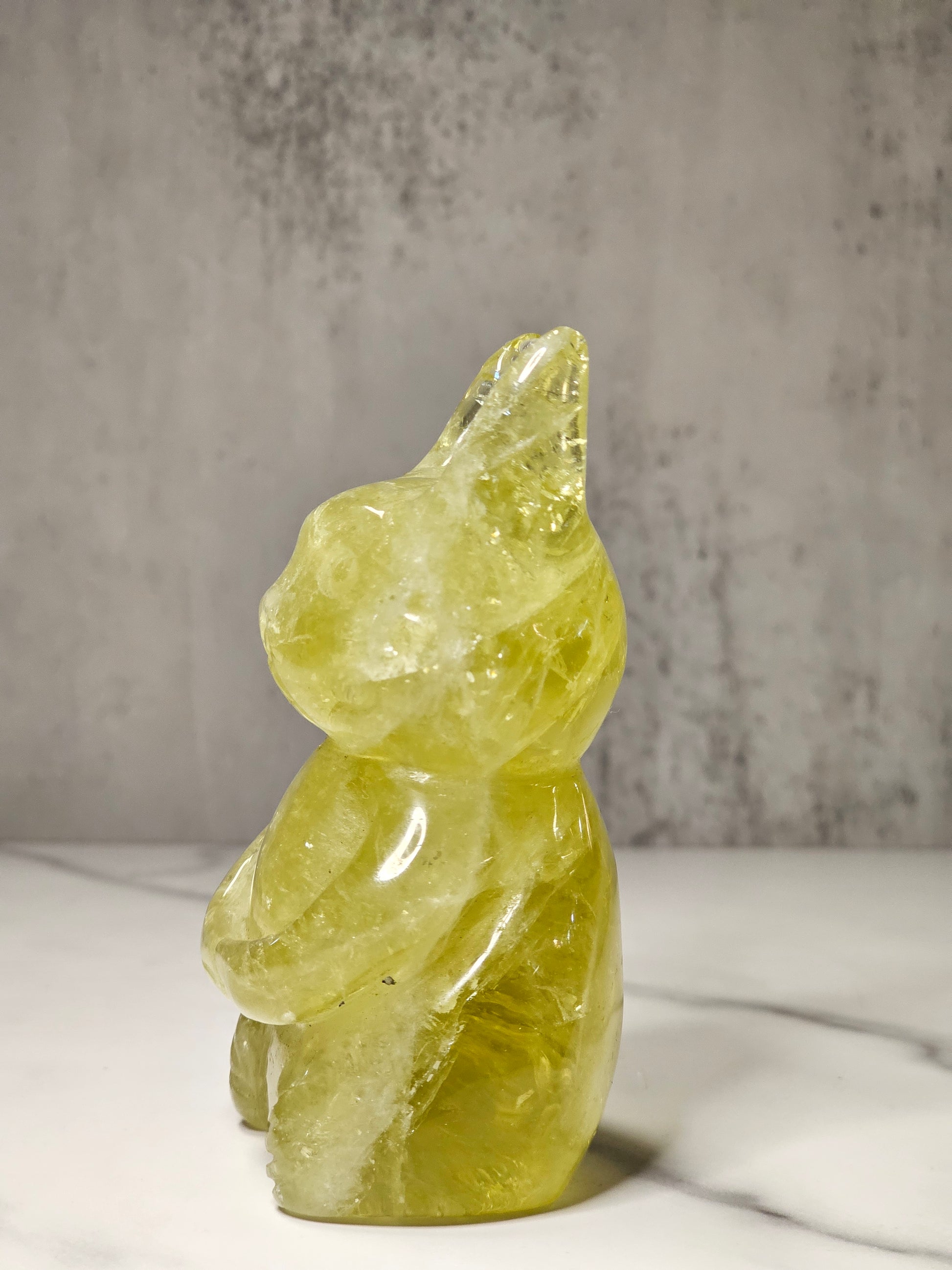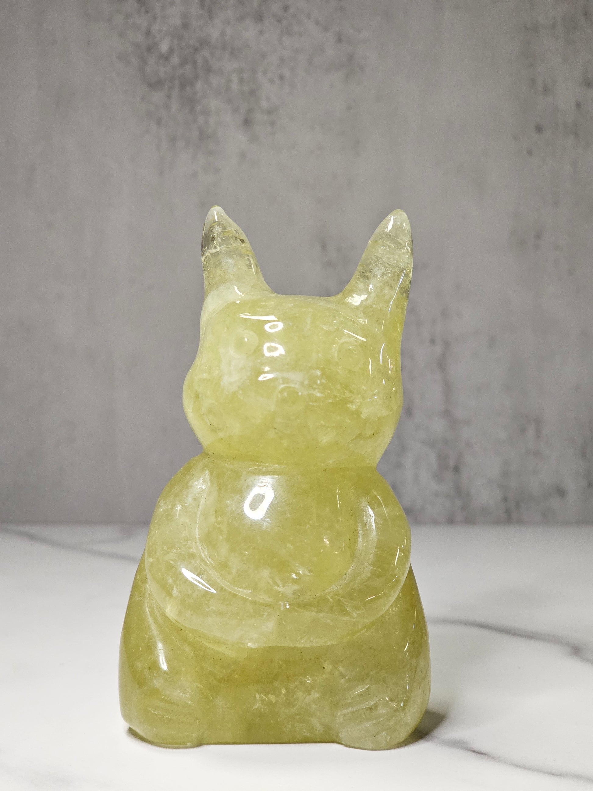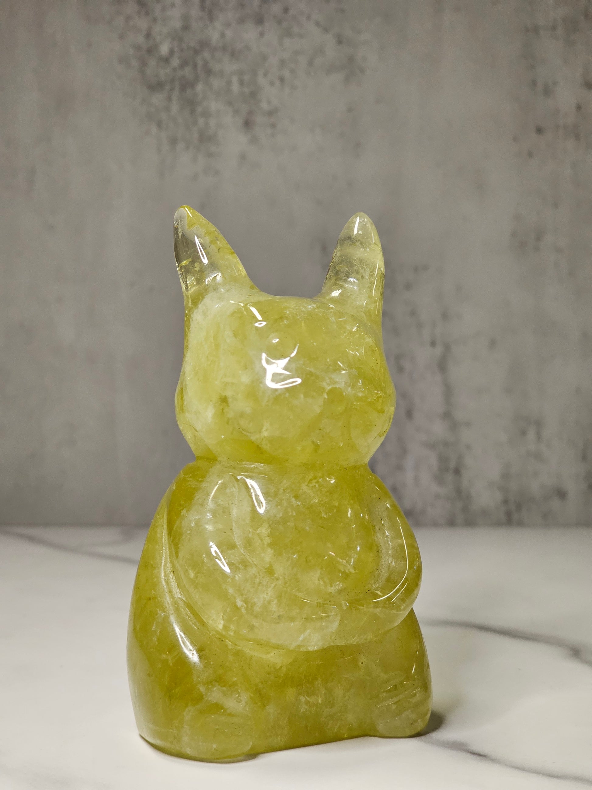 This Pikachu carving is made of Citrine. It stands 4.32 inches tall and is 2.20 inches wide.