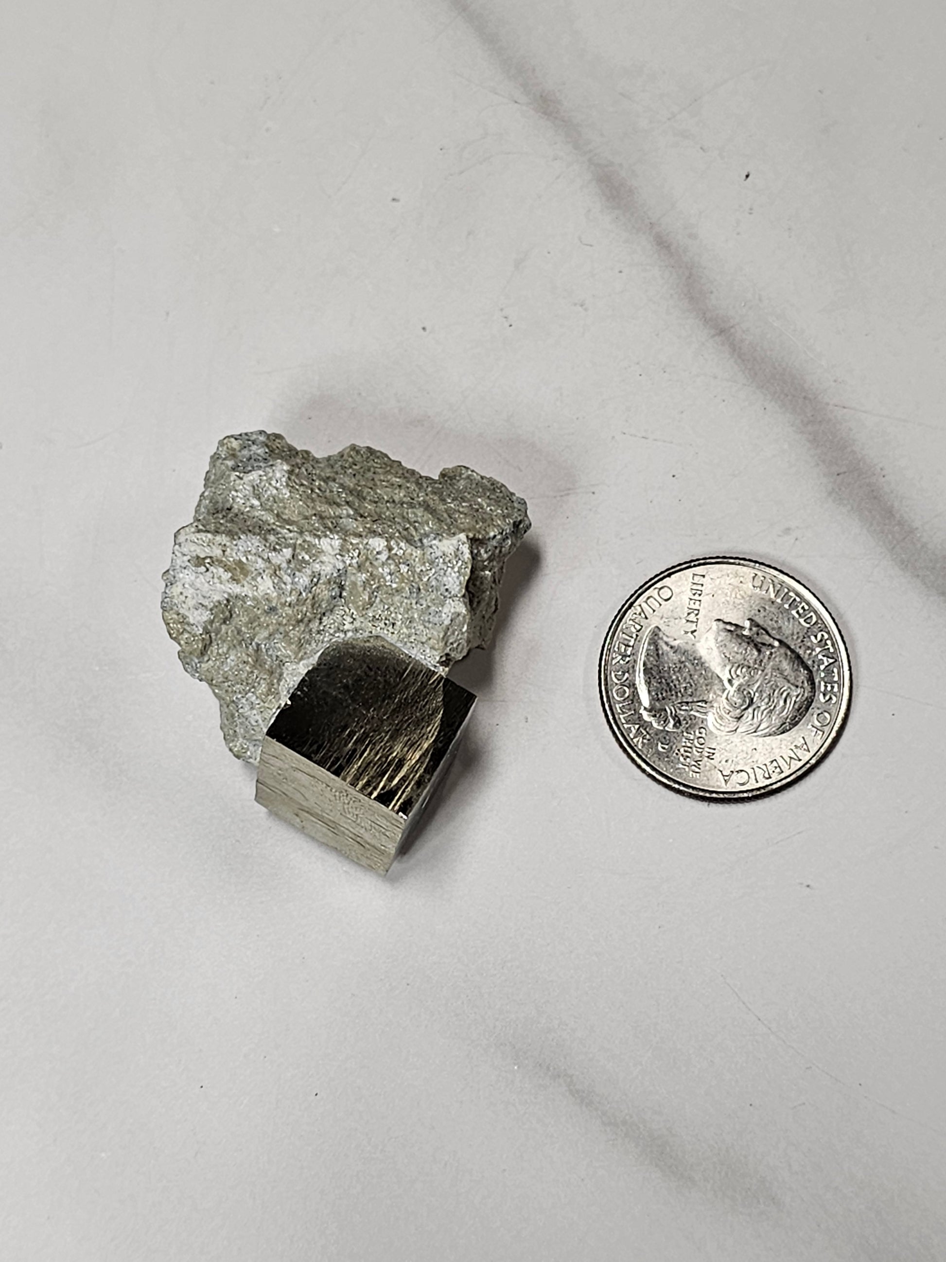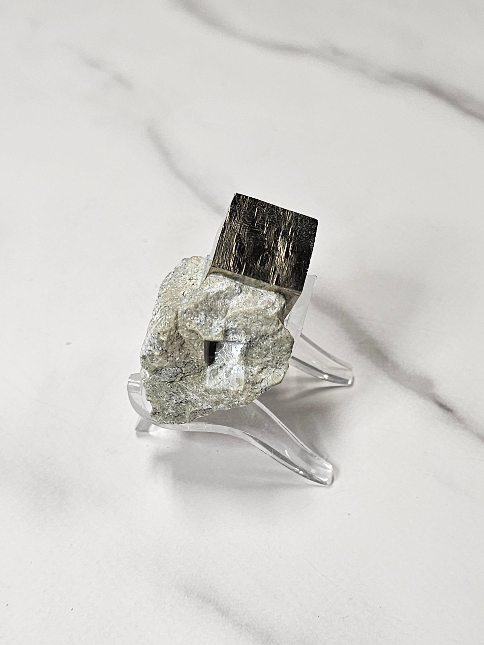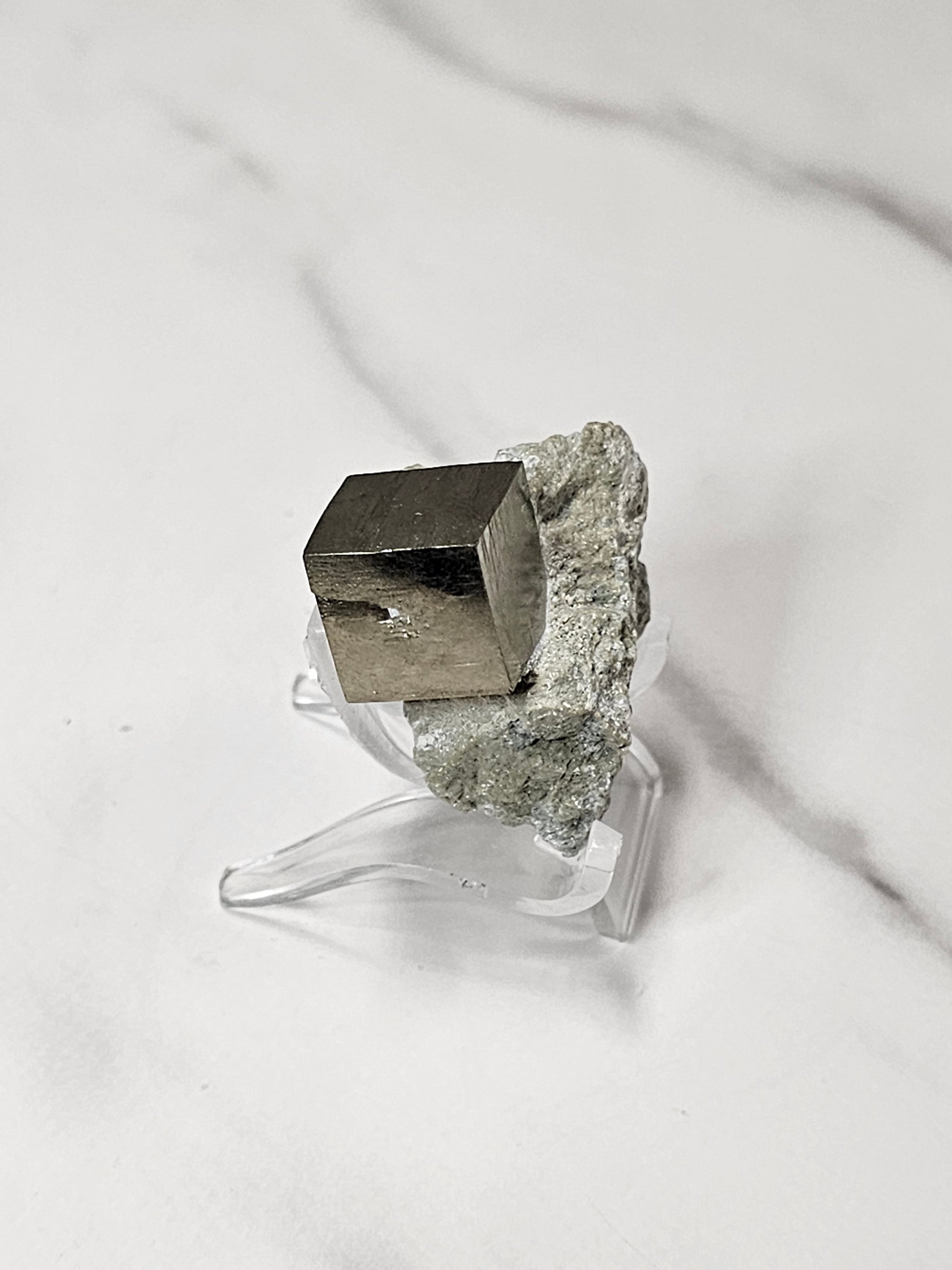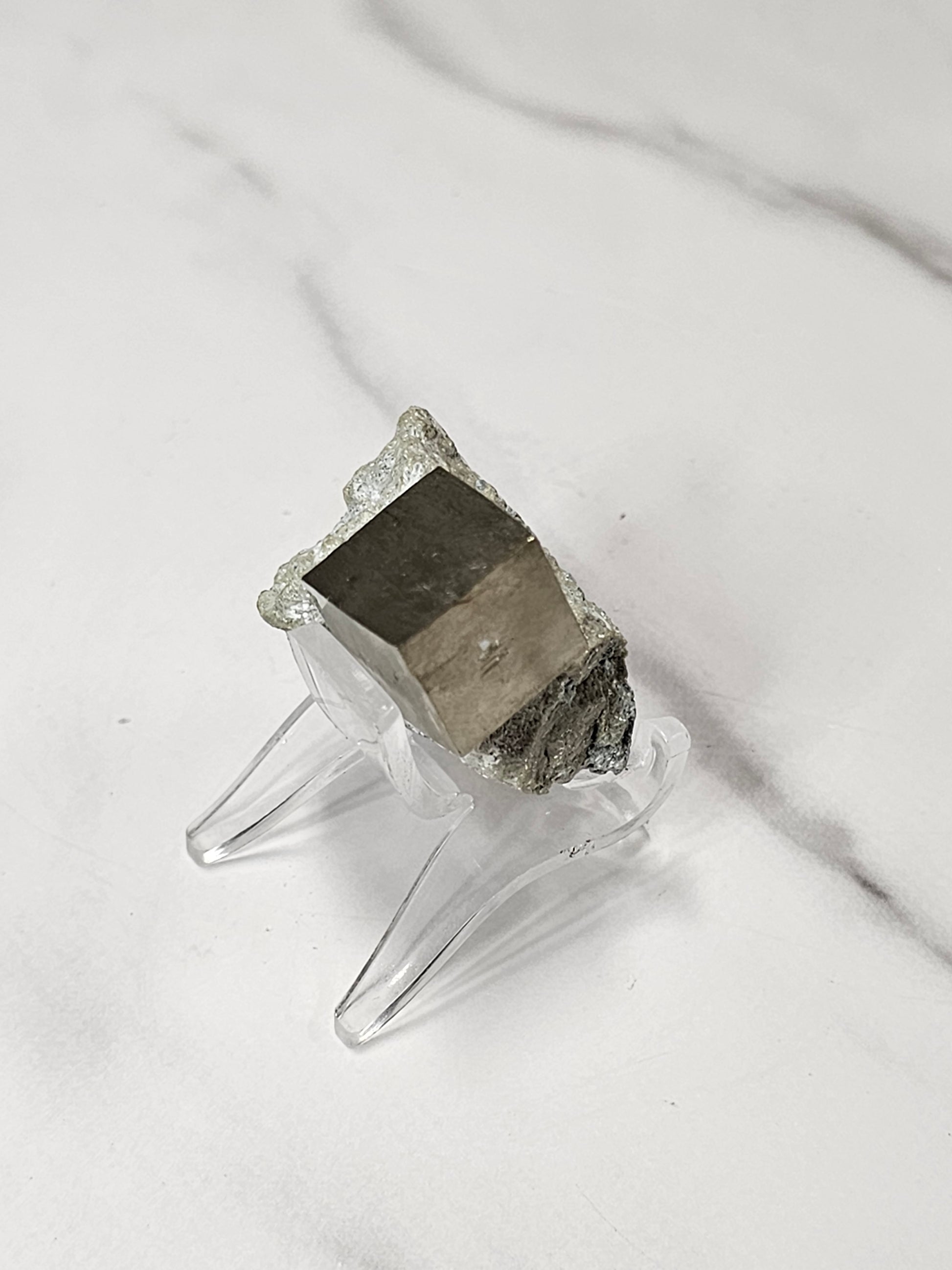 This is a really neat piece of naturally formed cubic Pyrite in matrix. It weighs 36 grams. It is approximately 40mm in size.