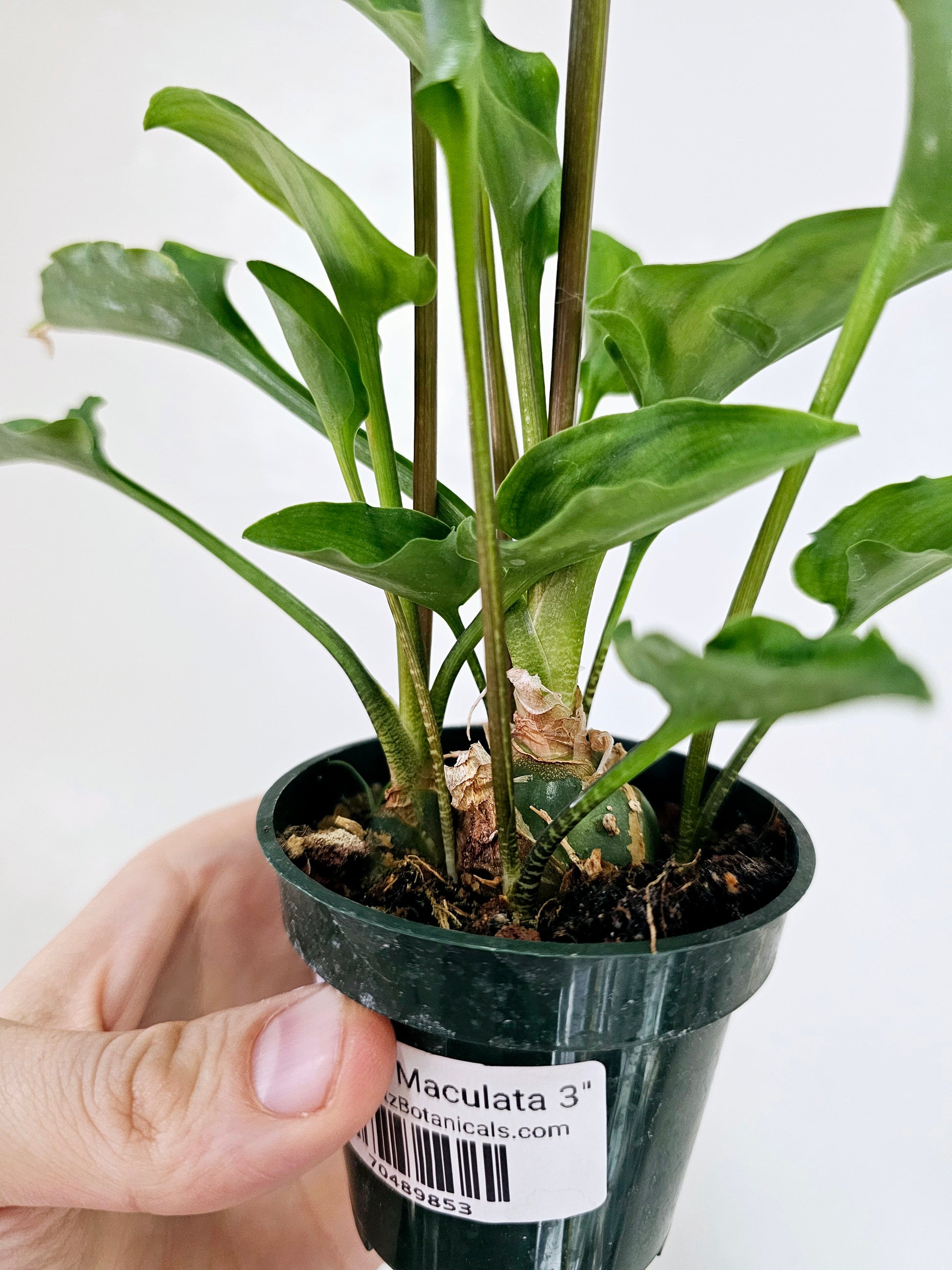 These uncommon bulb forming plants are endemic to South Africa. They quickly produce offsets are tall flower spikes. During the warmer months, they get dark polka dots on their leaves which fade when the days are shorter. Each one is growing and established in a 3" nursery pot.