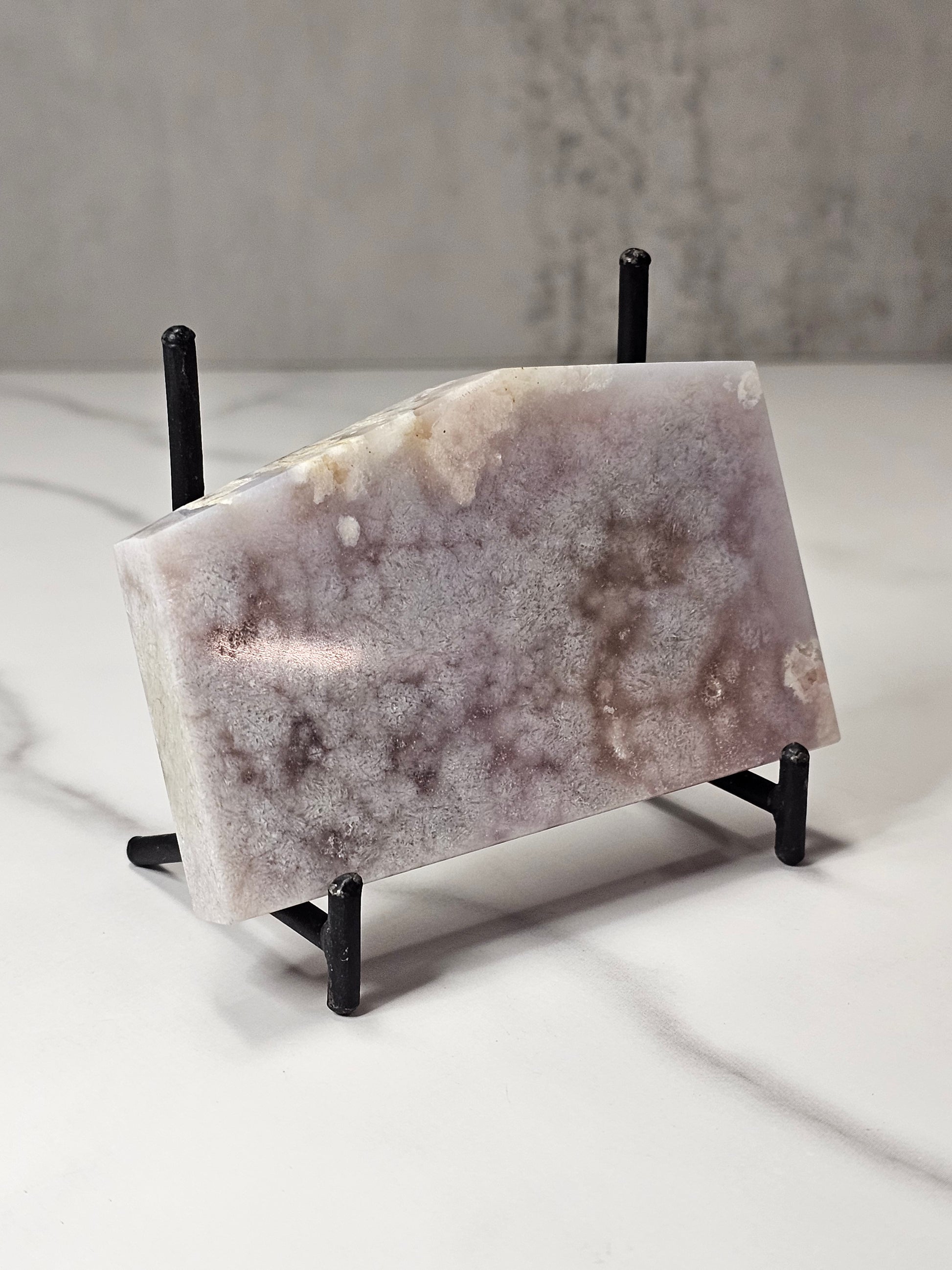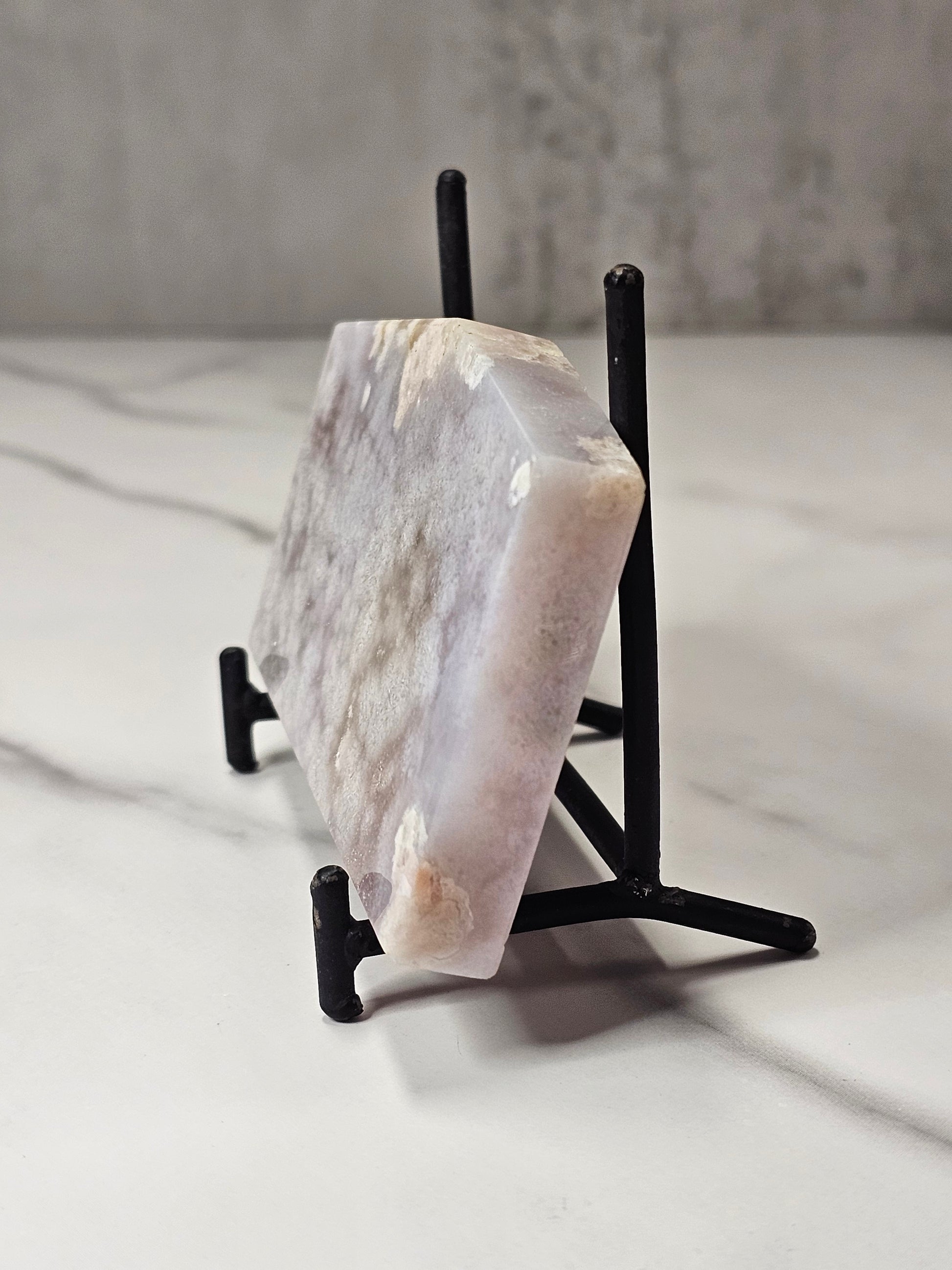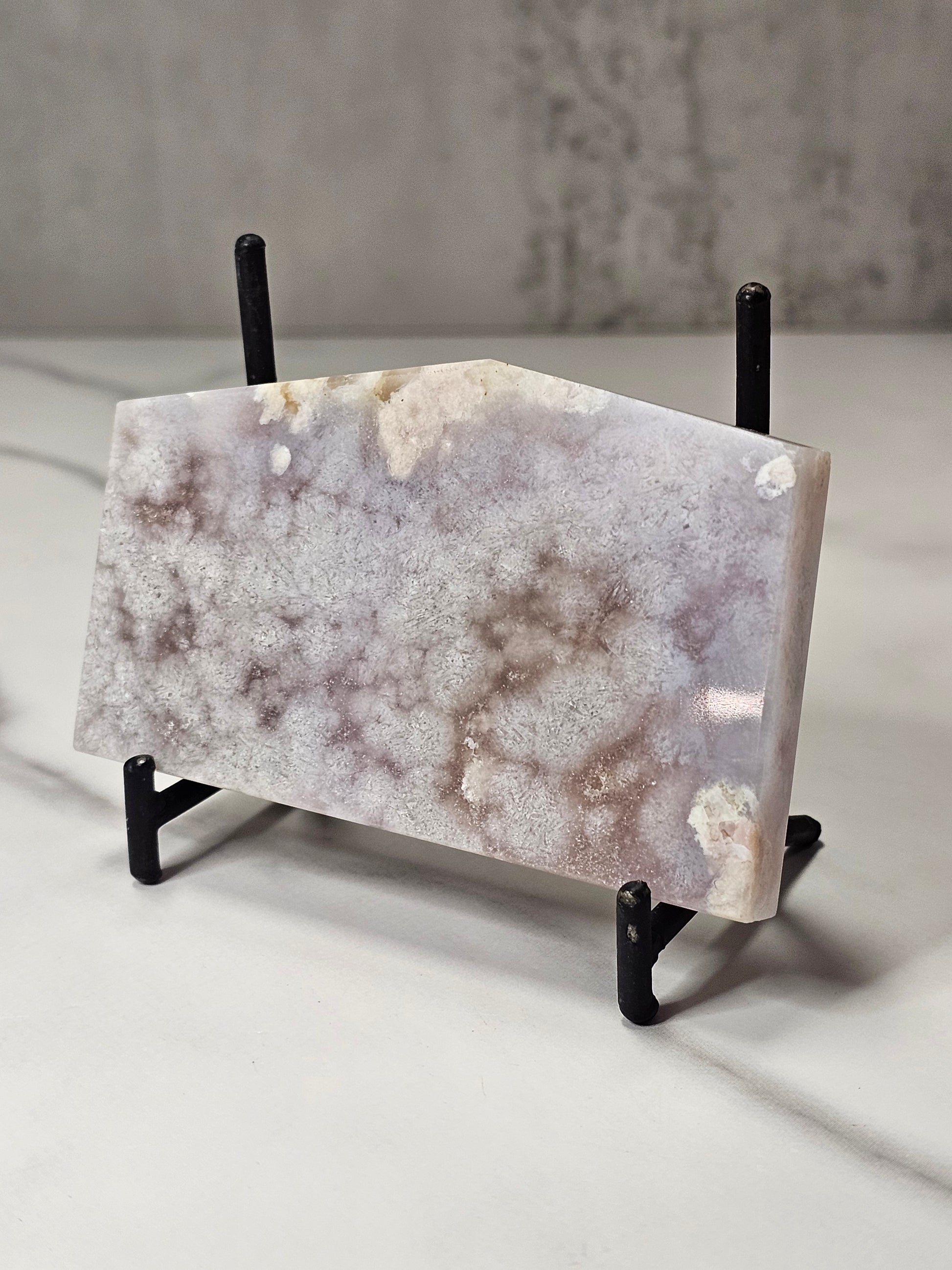This nicely polished slice of Flower Agate is really pretty and had a nice light pastel color to it! It is 3.26 inches long by 1.98 inches wide and 0.5 inches thick.