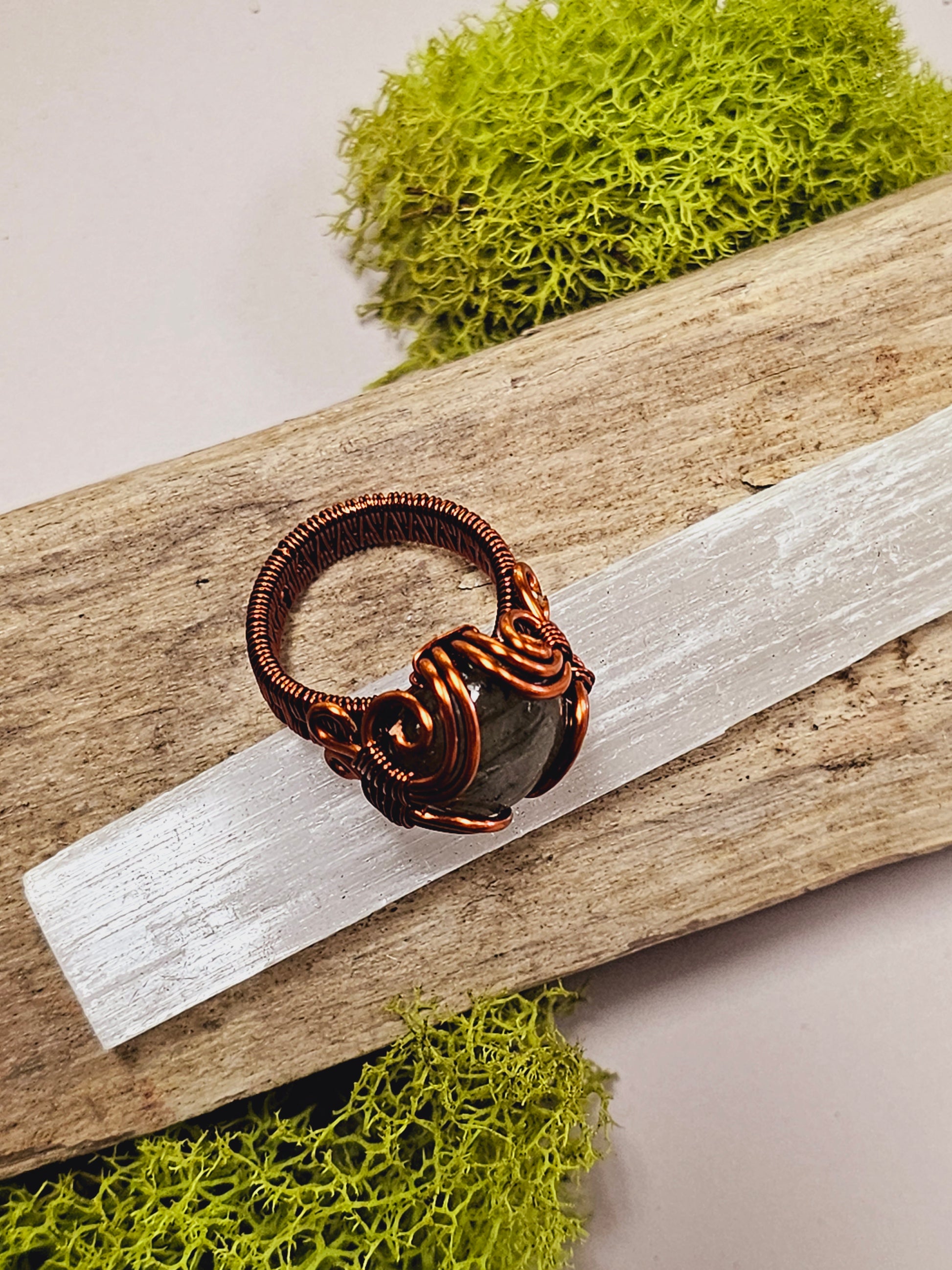 Labradorite and Copper Wire Wrapped Ring Size 6.25