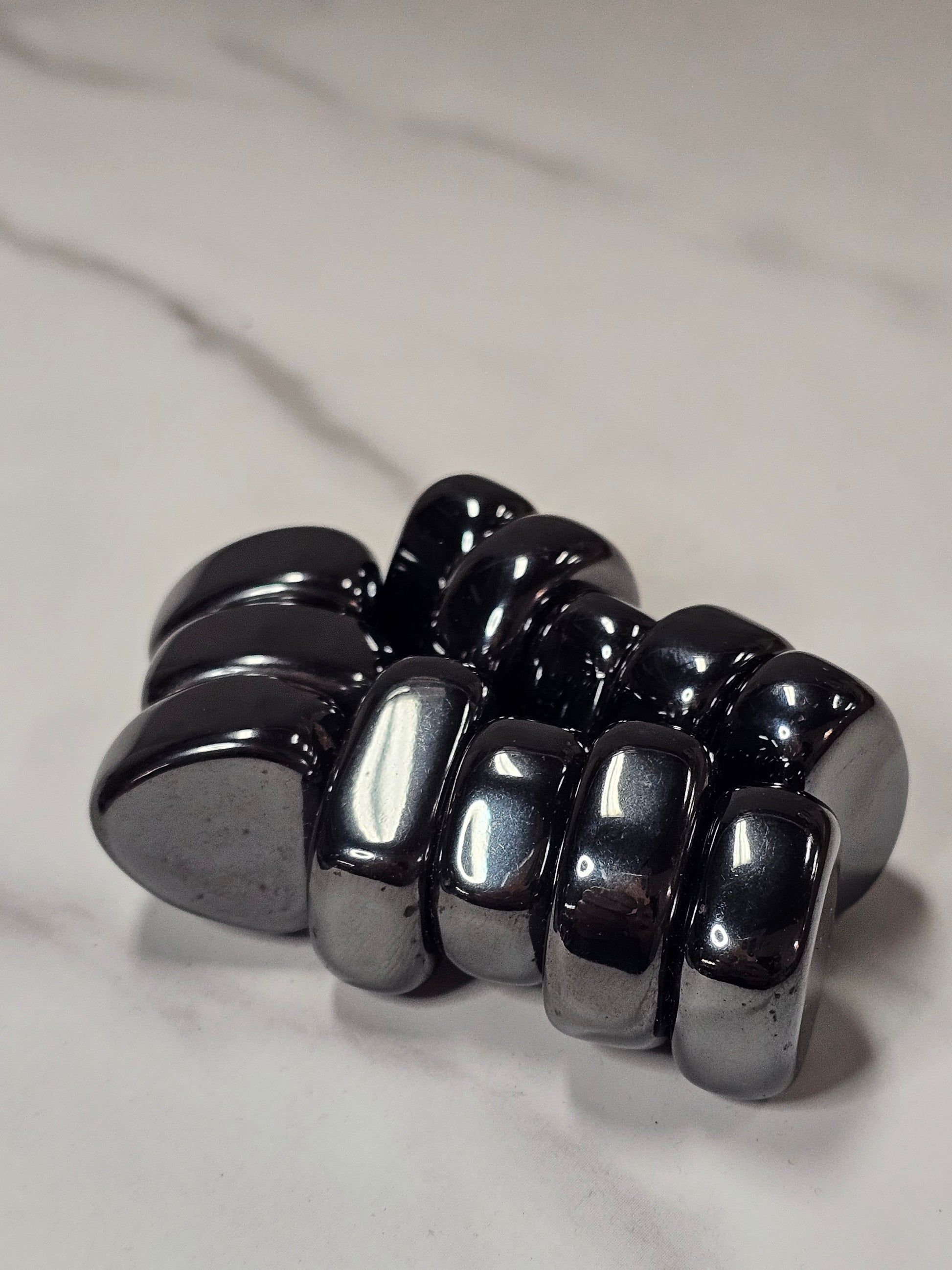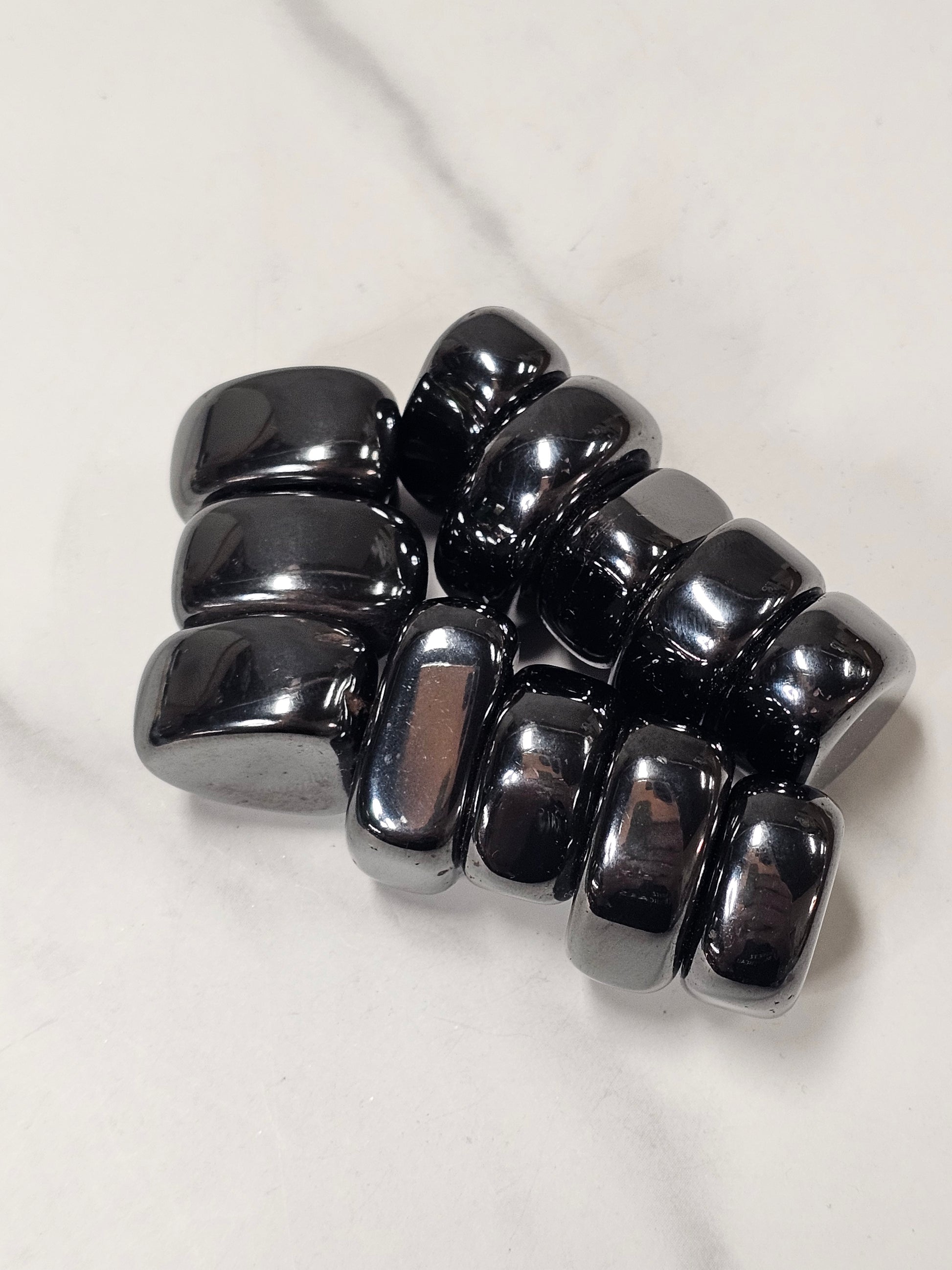 Each bag contains 12 pieces of polished magnetic Hematite stones. These are a good stress reliever and natural fidget toy! There are a variety of fun games that can be played with these too in a group. Each woven bag is 4x5.5 inches. Each bag will be shipped at random.