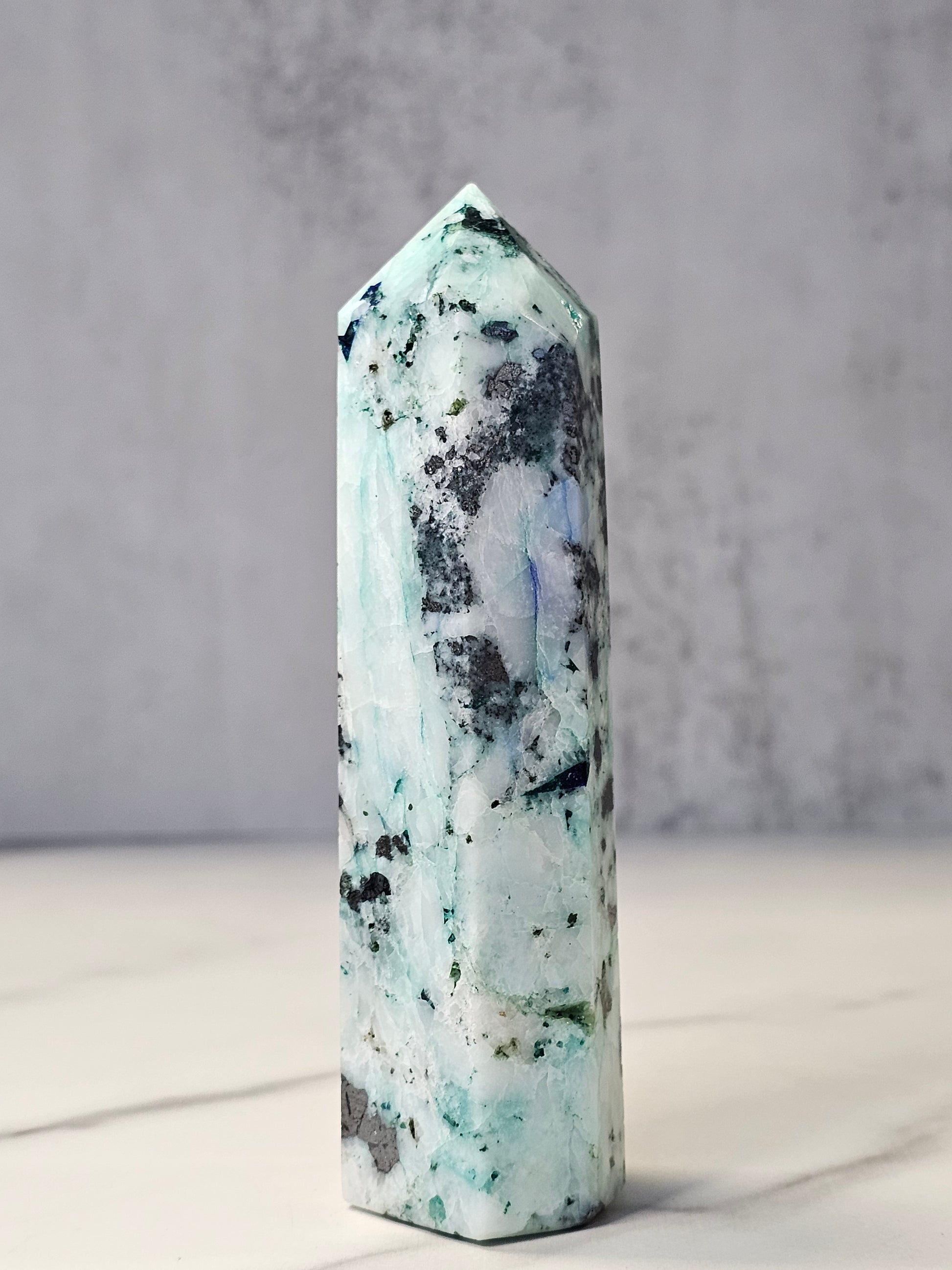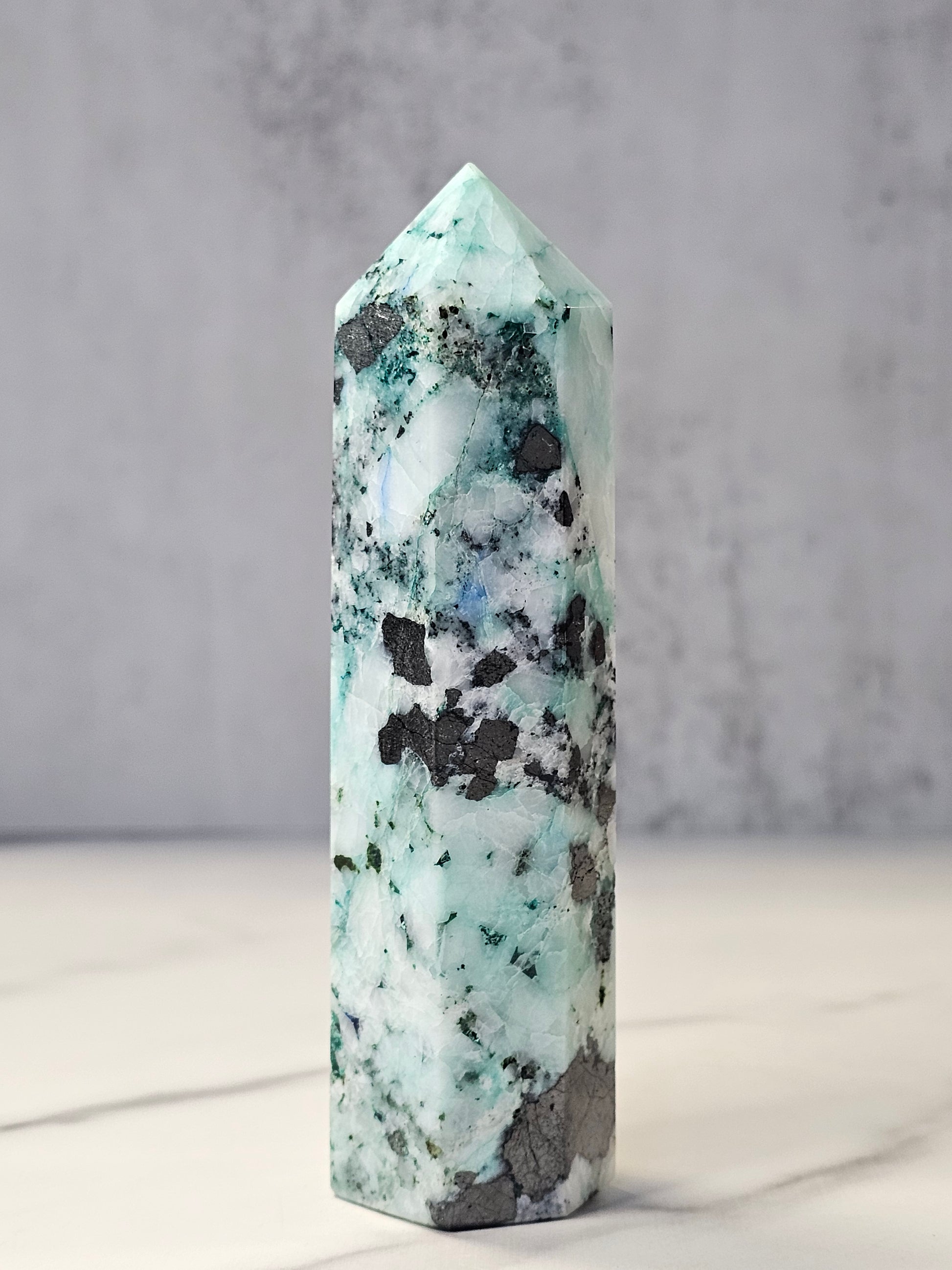 Phoenix Stone is a naturally occurring combination of Chrysocolla, Turquoise, and Malachite