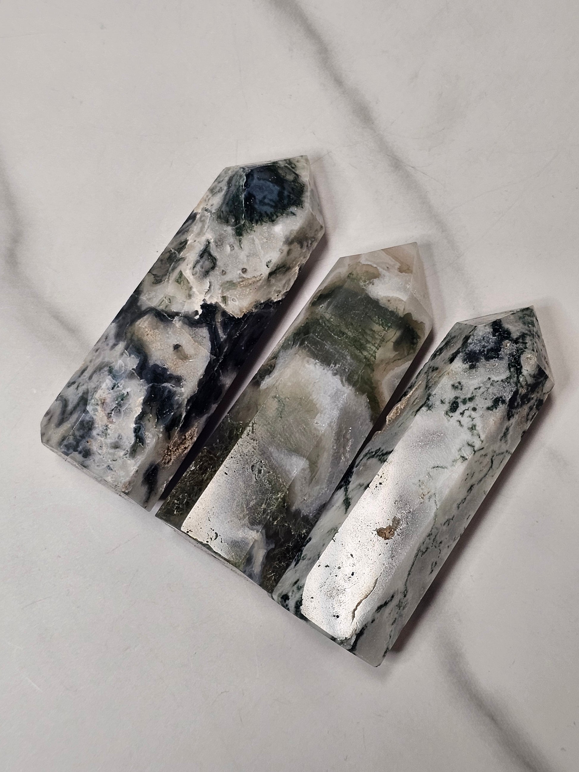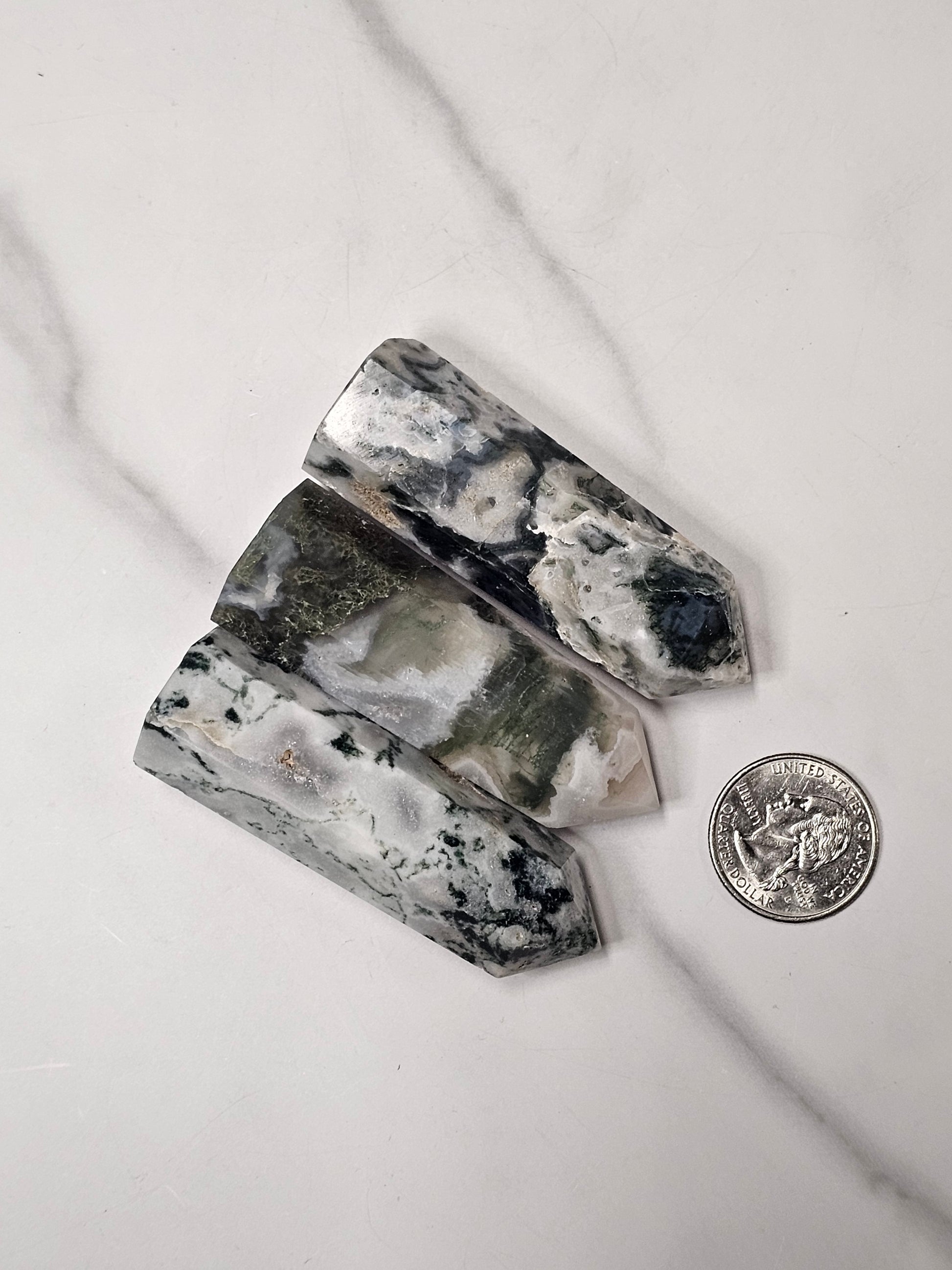 These Tree Agate towers are smaller in size at 2.5-2.75 inches in height. Each one is shipped curators choice at random.