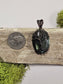 This handmade wire wrapped pendant comes on an 18" black cord with metal clasps. Really cool use of dark oxidized wire and Labradorite.