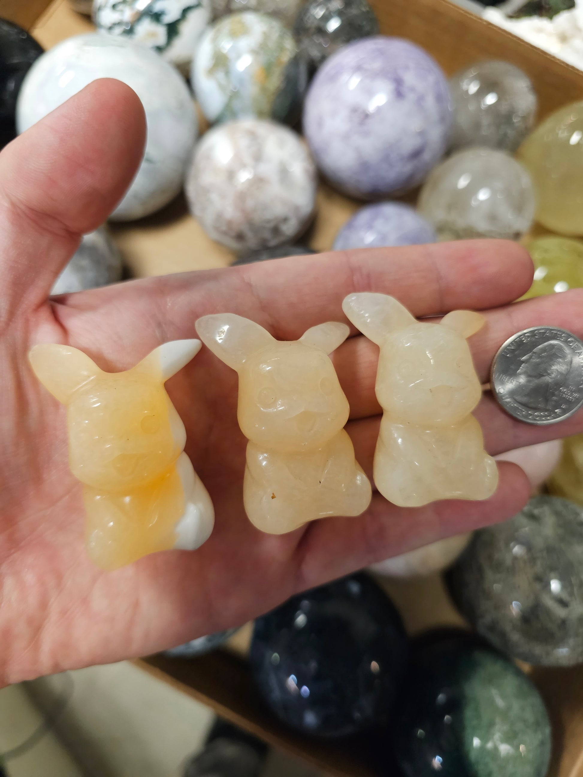 These Pikachu carvings are made from Yellow Calcite and stand 2 inches tall.