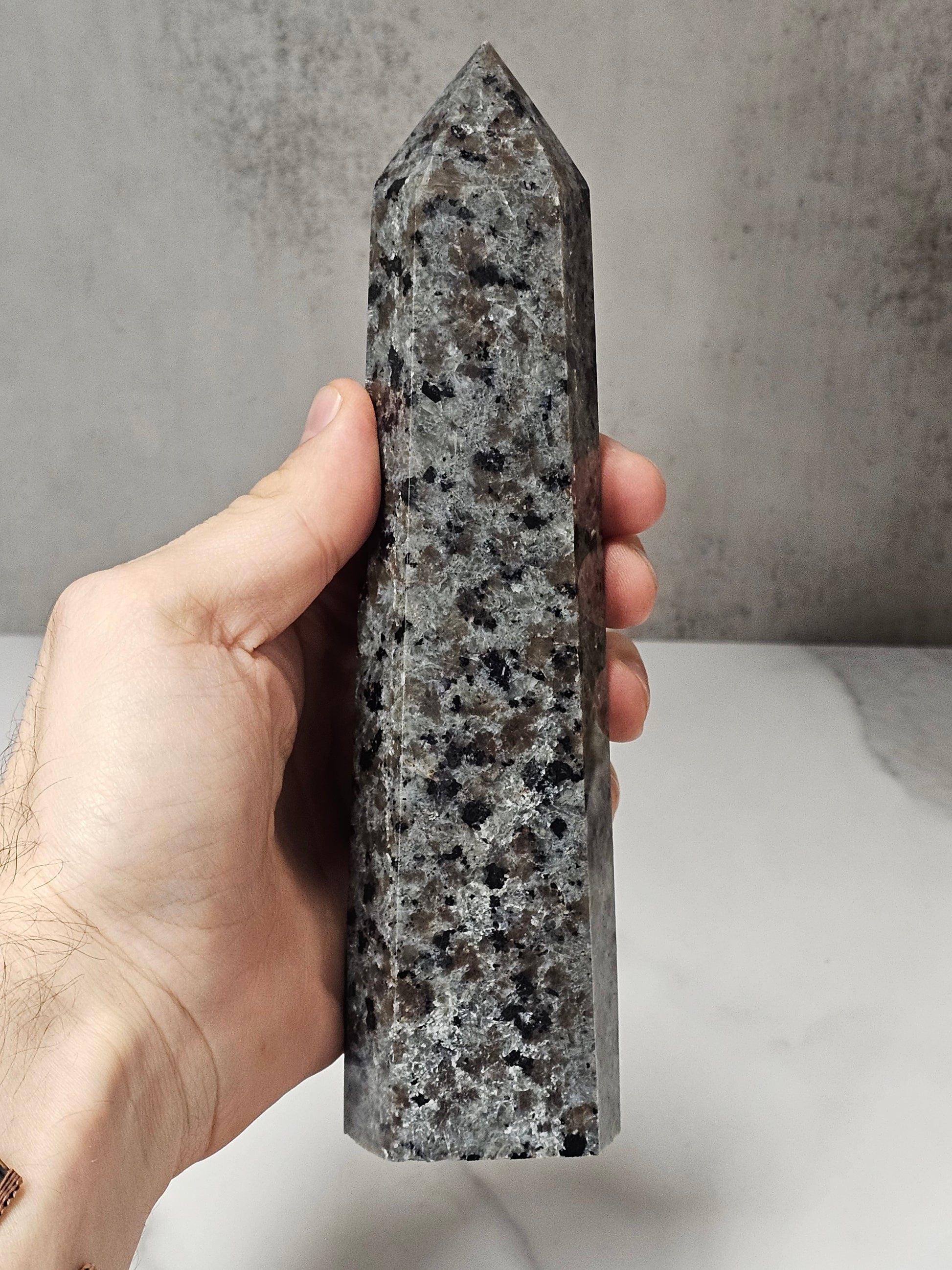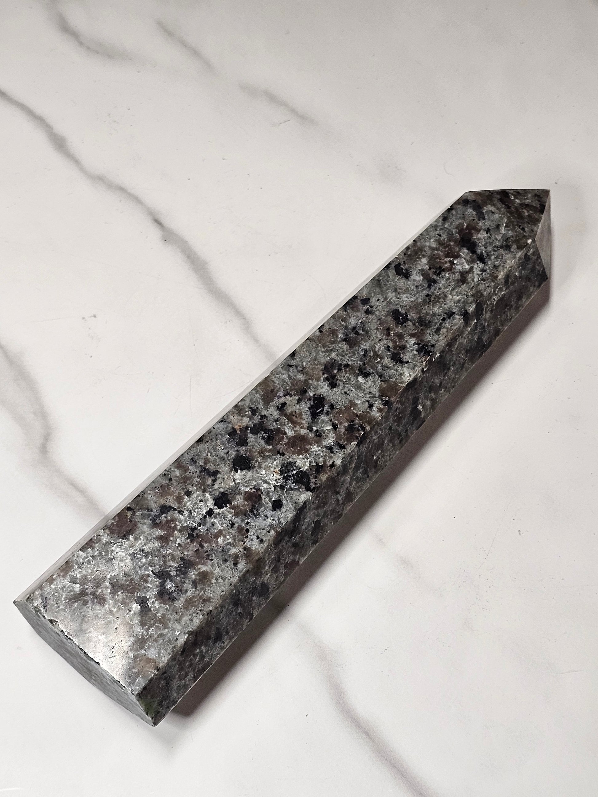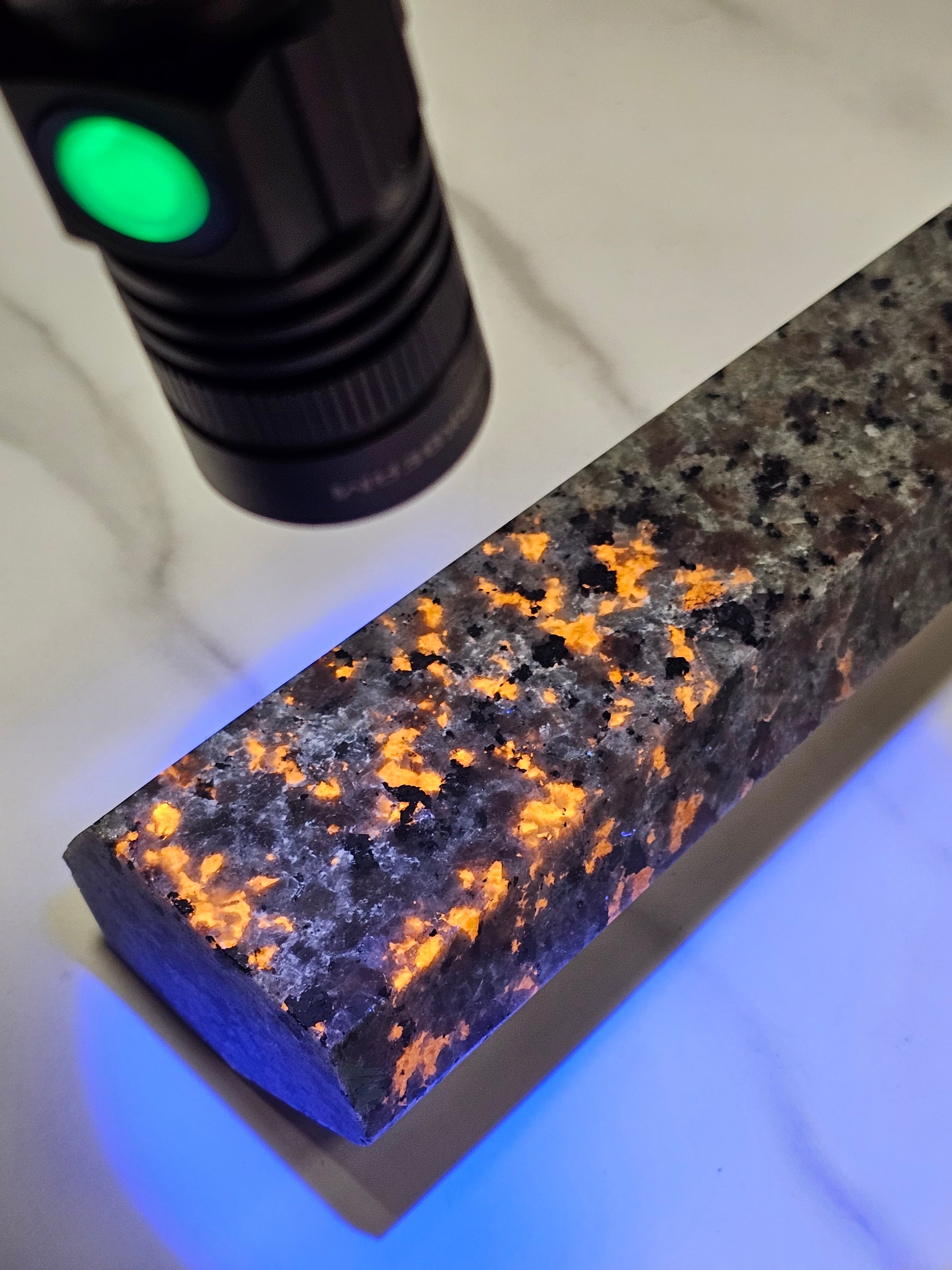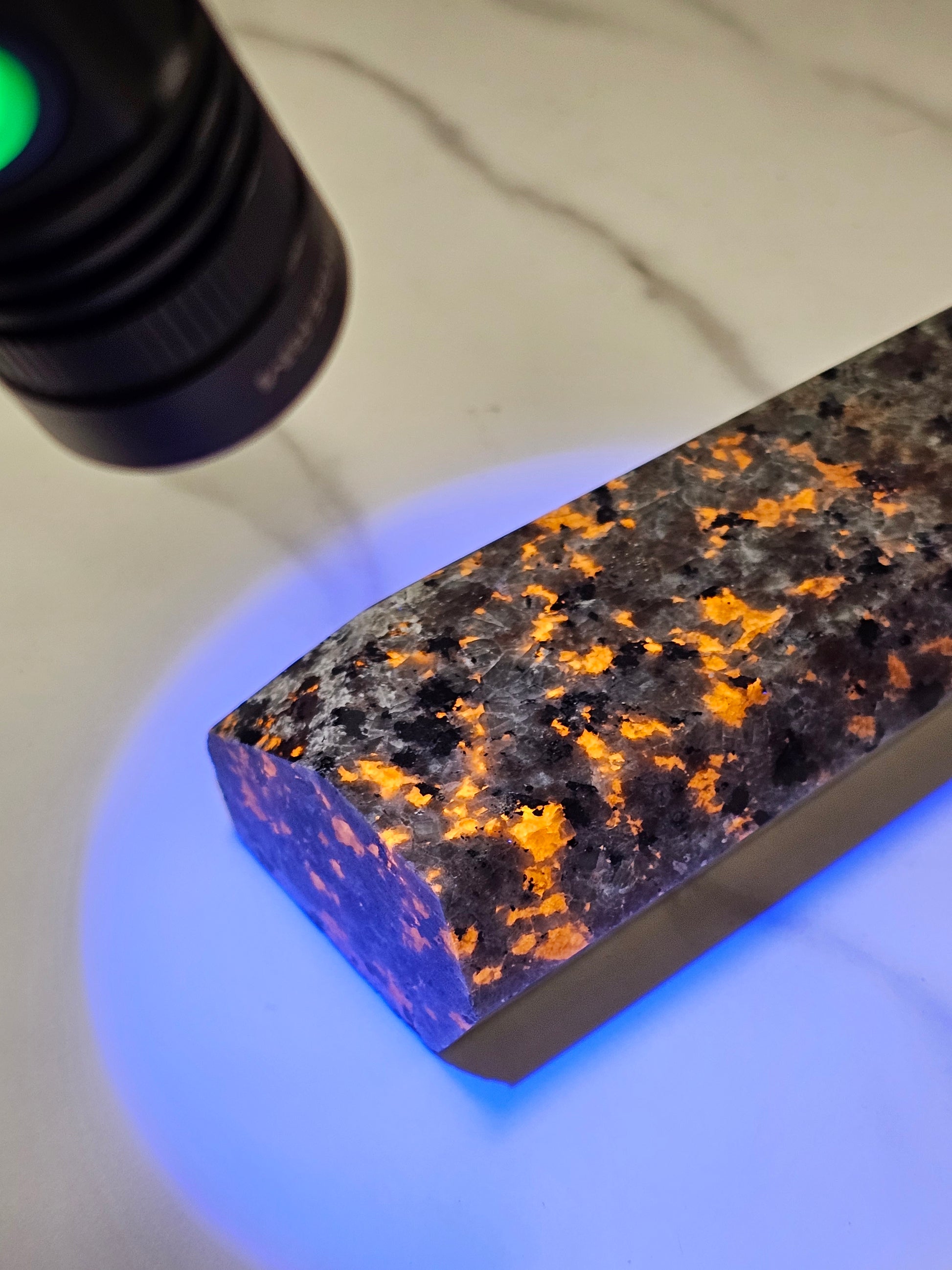 This large Yooperlite tower fluoresces a bright vibrant orange color under UV light and almost looks like it is on fire! This tower stands tall at 7.8 inches tall and 1.99 inches wide at the base. It weighs 18.5 ounces. The exact tower pictured is the one you will receive.