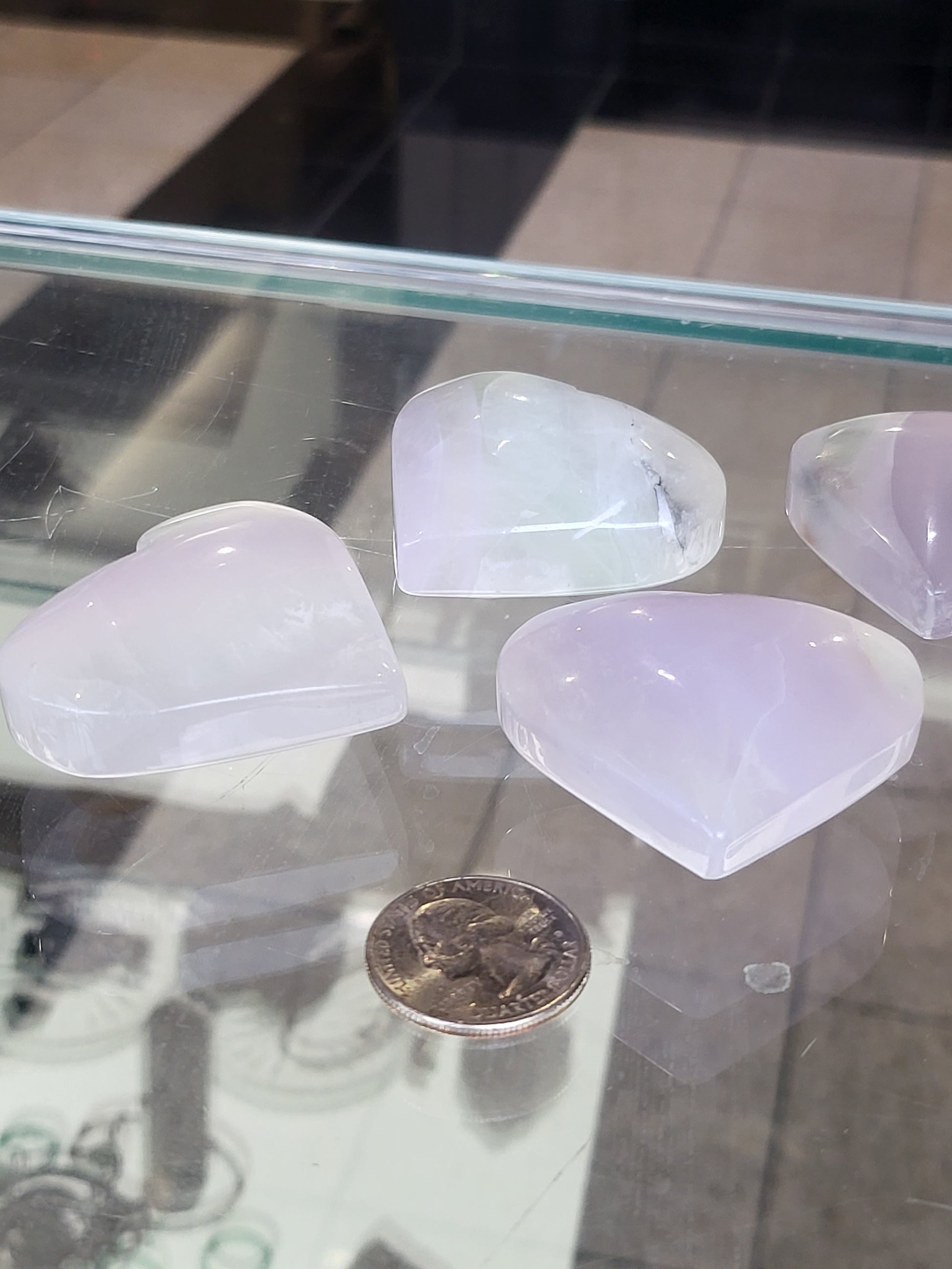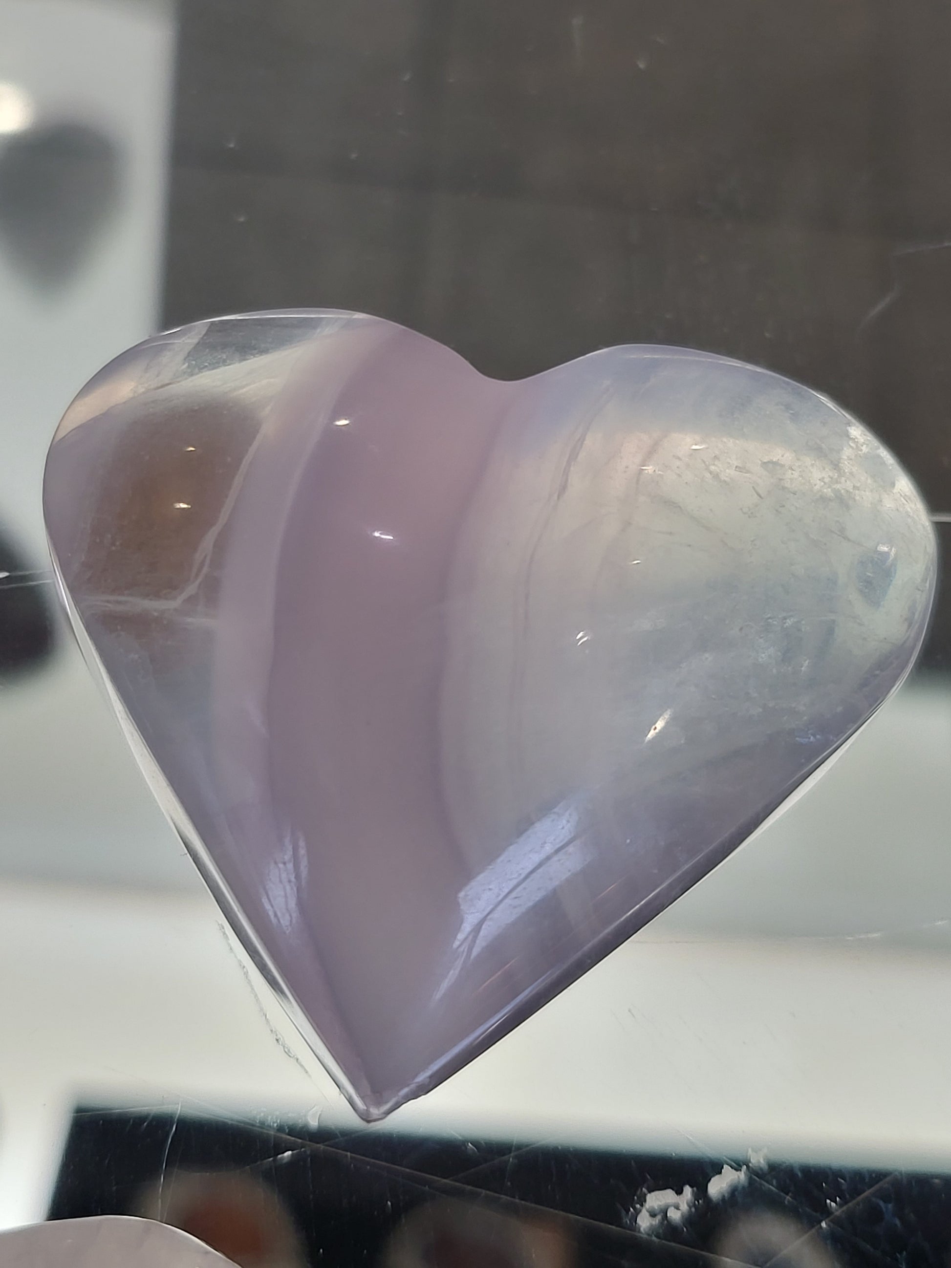 These Yttrium Fluorite heart carvings have beautiful light pastel colors.